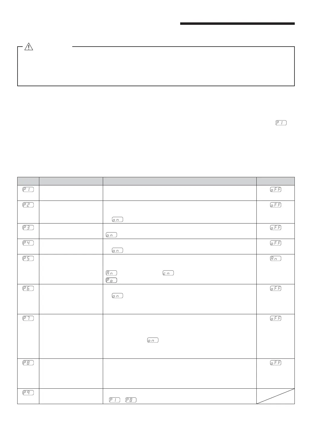 ・When changing from the parameter mode to normal operation, be sure to toggle the Main Power