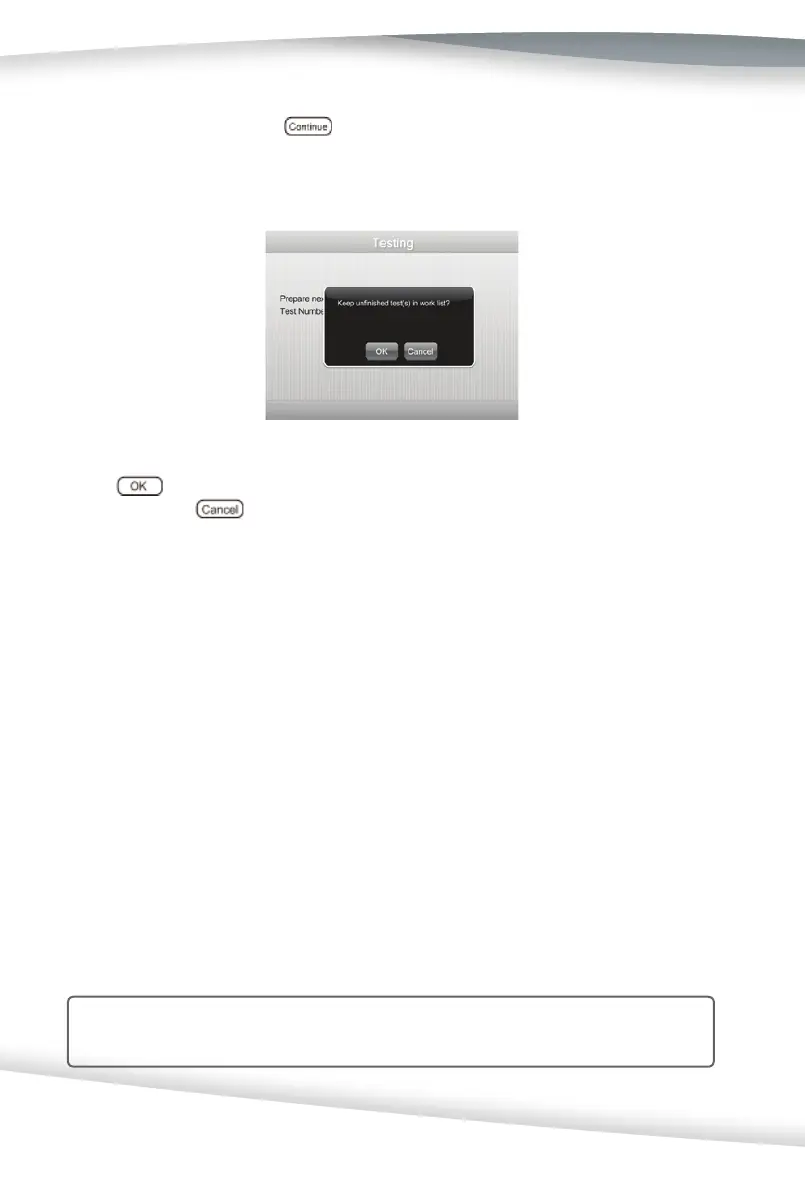 Press to keep unfi nished tests in the Work List and return to the Test Prepara -