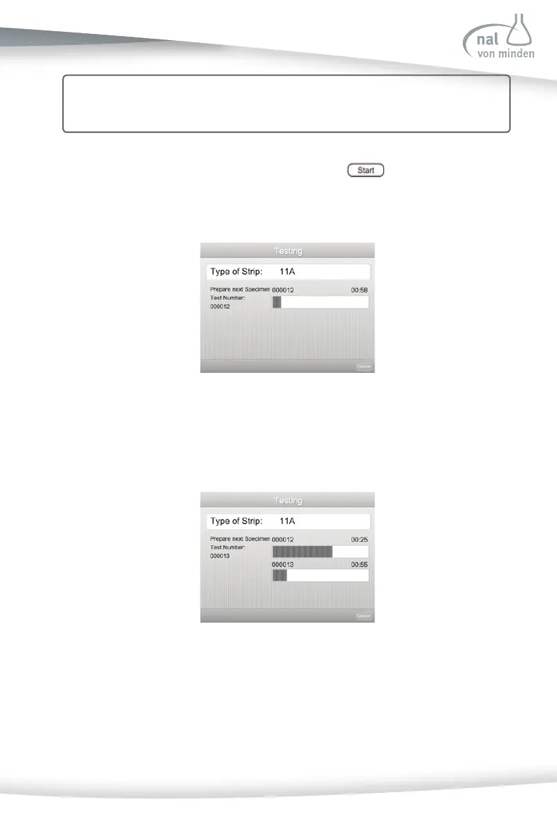 The fi rst two beep sounds prompt the user to dip the fi rst strip into the specimen and