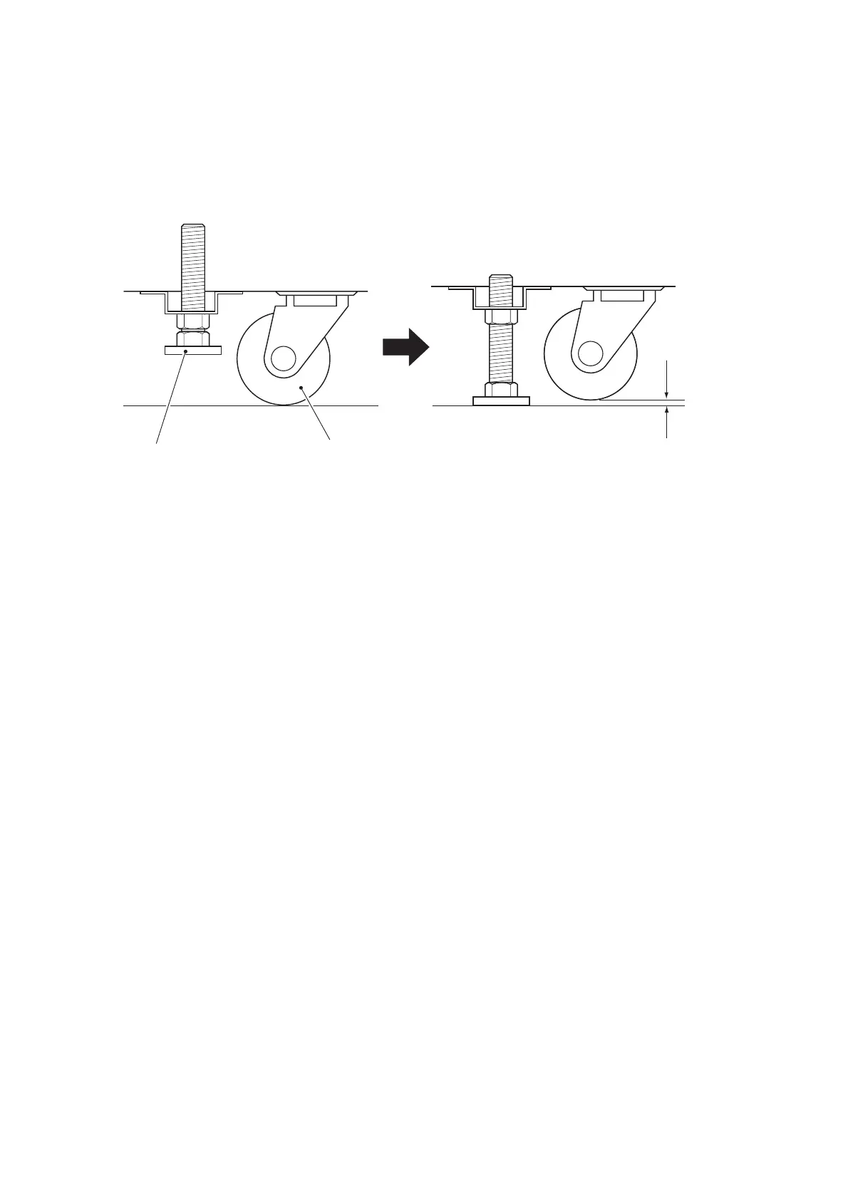 Monitor Cabinet, with a spanner, so that all castors are raised from the floor by