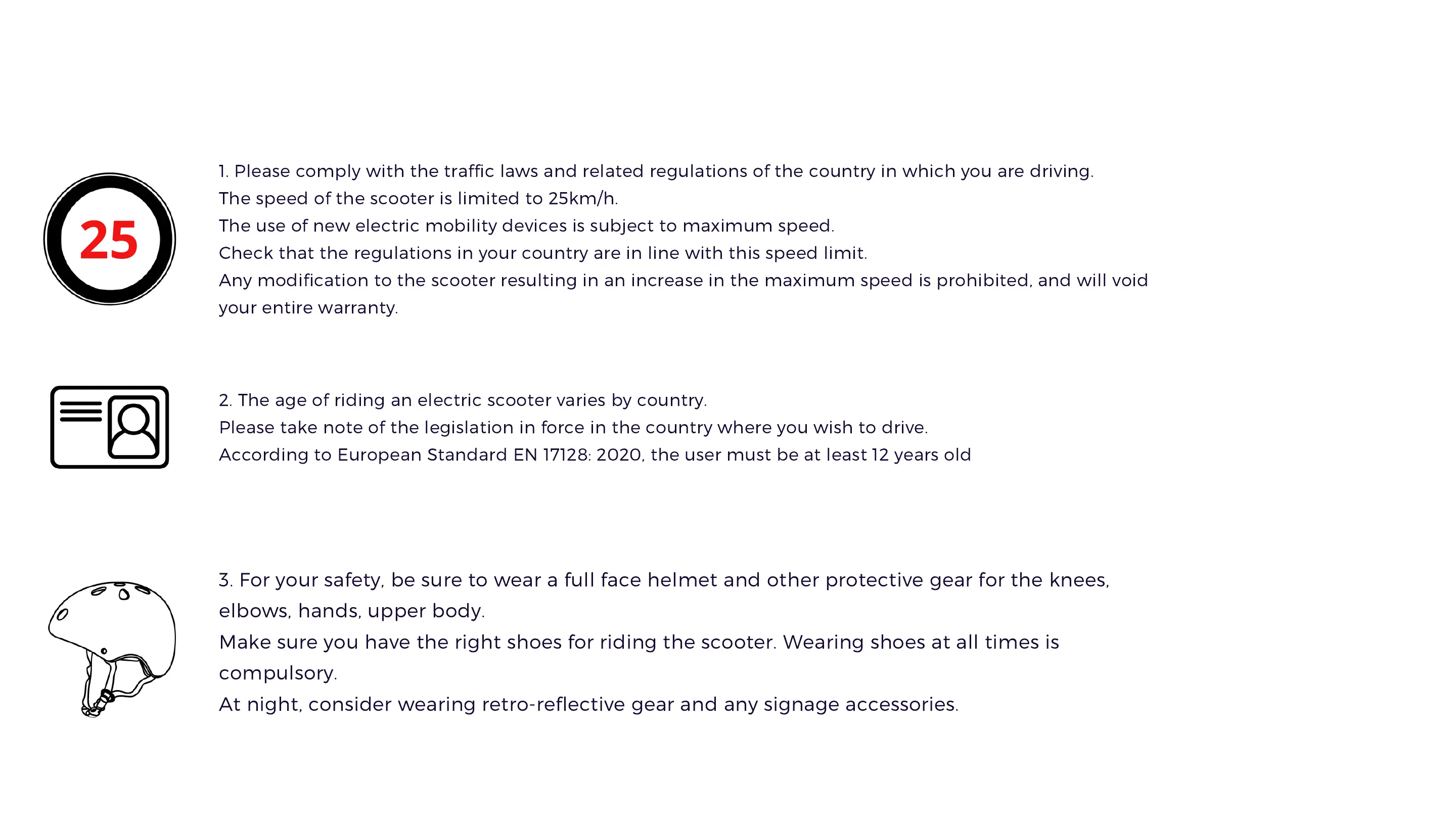 NAMI ELECTRIC BURN-E - Safety Instructions and Protective Gear; Compliance and Age Requirements; Protective Gear Recommendations