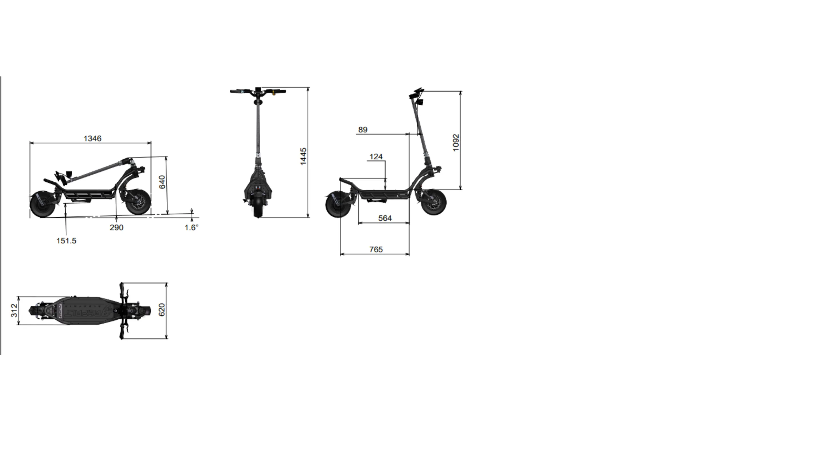 1090 mm od kierownicy do podestu,