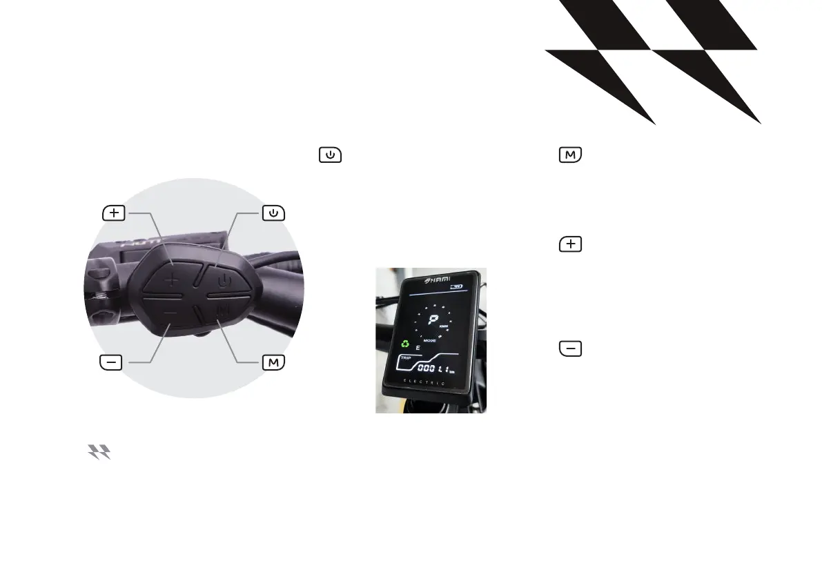 The dashboard is delivered with a control unit located on the handlebar with 4 buttons: