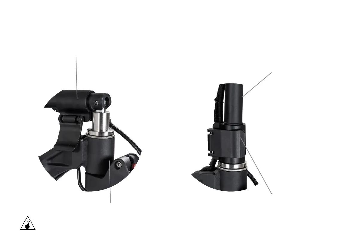 Mantenga los dedos alejados del mecanismo giratorio cuando pliegue o despliegue el scooter para evitar el riesgo de pellizcos.