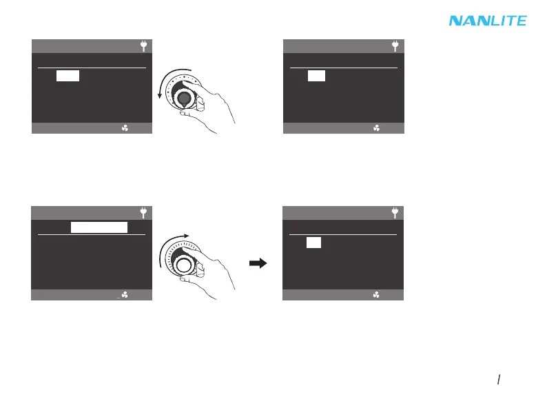 Rotate the right knob to select DIM, CCT, CCT SHITF (range: 0K-3000K) or SPEED (range: 1-100),