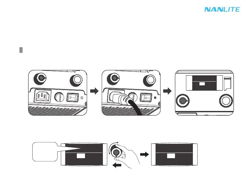 1. Make sure the power switch is in the "OFF" position, then connect the fixture to the adapter with power cable. Then