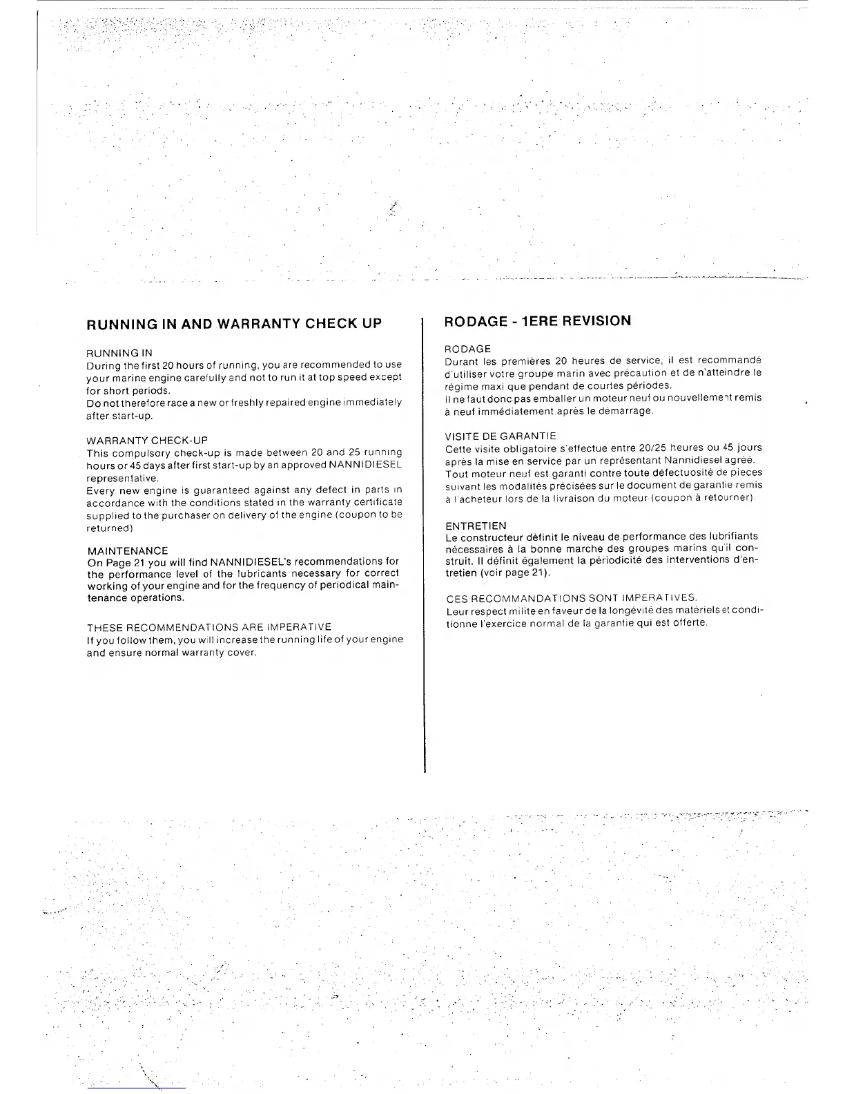 Nanni 2.40 HE - Running-in and Warranty Check-up; Engine Running-in Procedure; Warranty Check-up Procedure