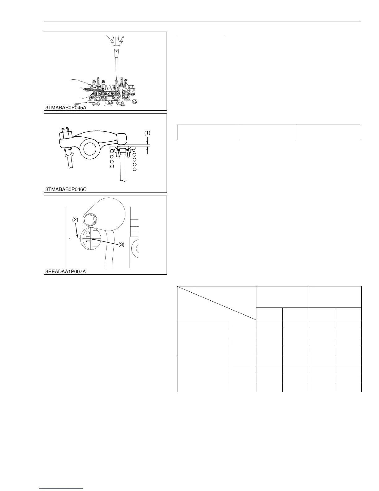 3. Check the following valve clearance (1) marked with “,” using a