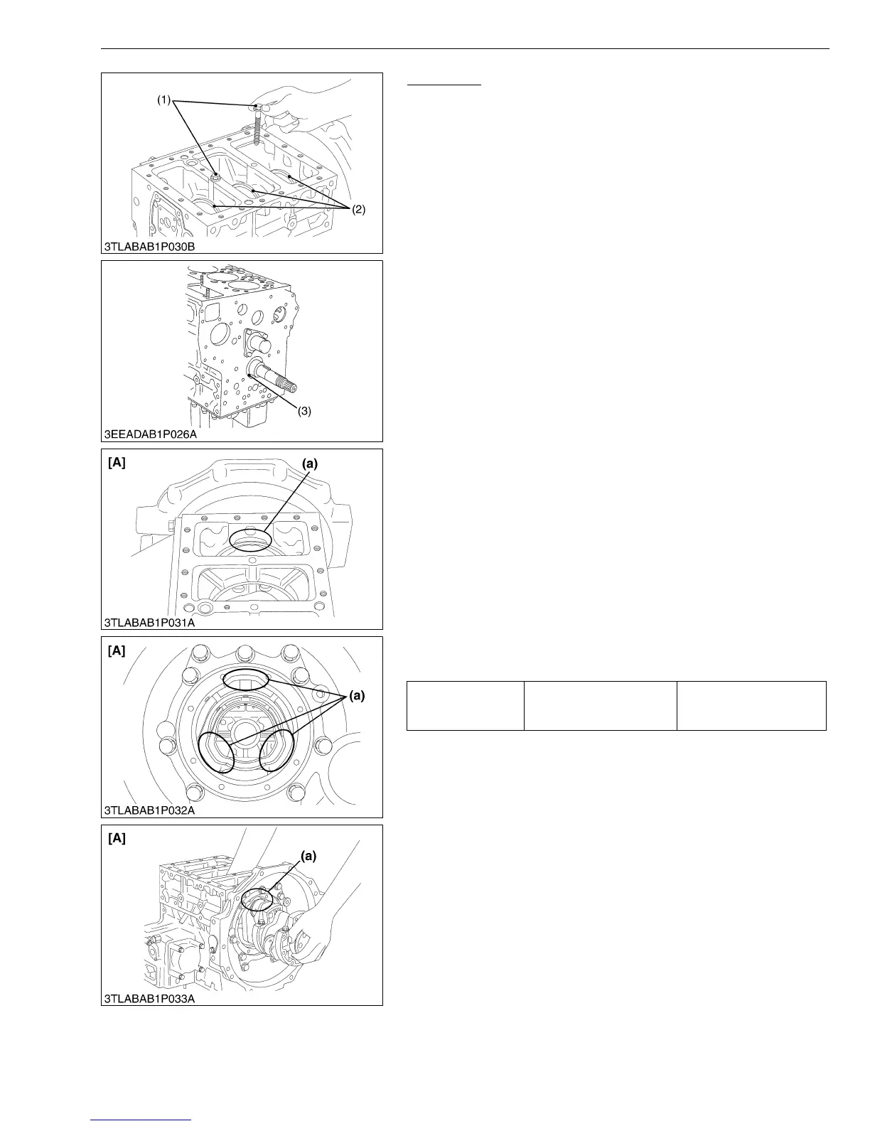 • When tightening the main bearing case screw 2 (1), apply oil