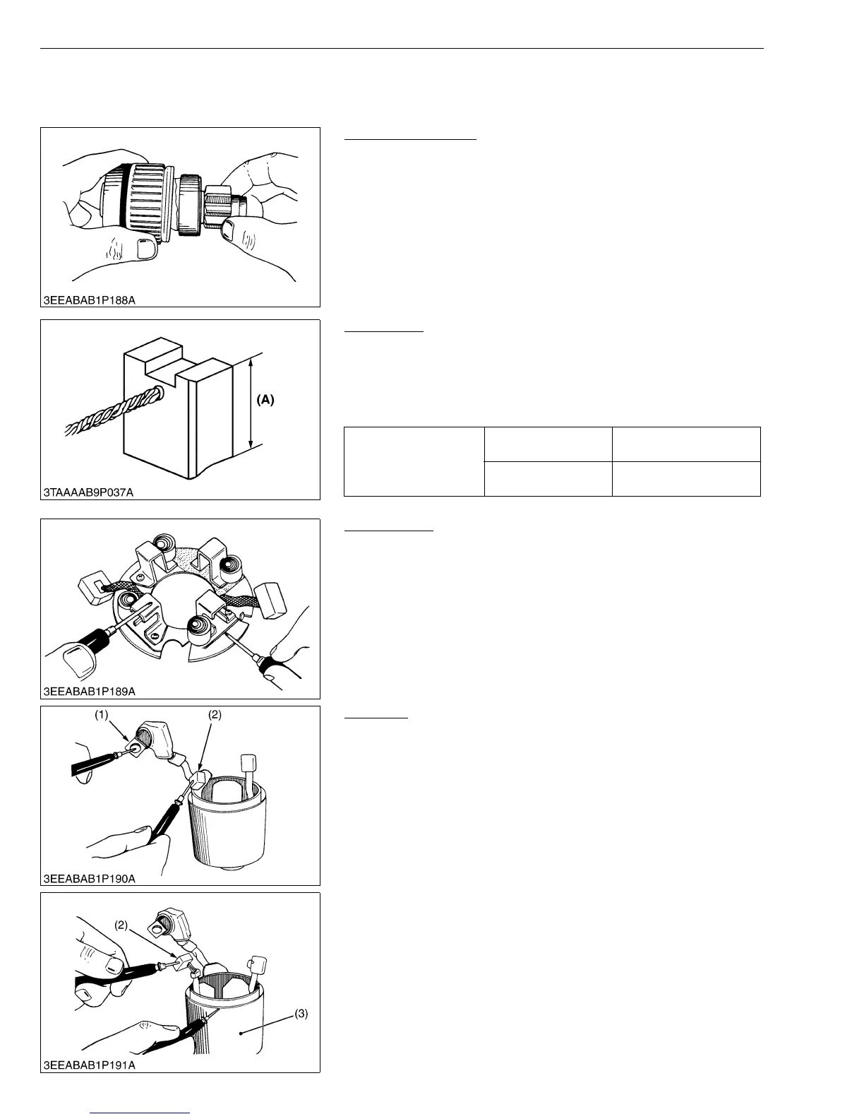 3. Check the continuity across the brush (2) and yoke (3) with a