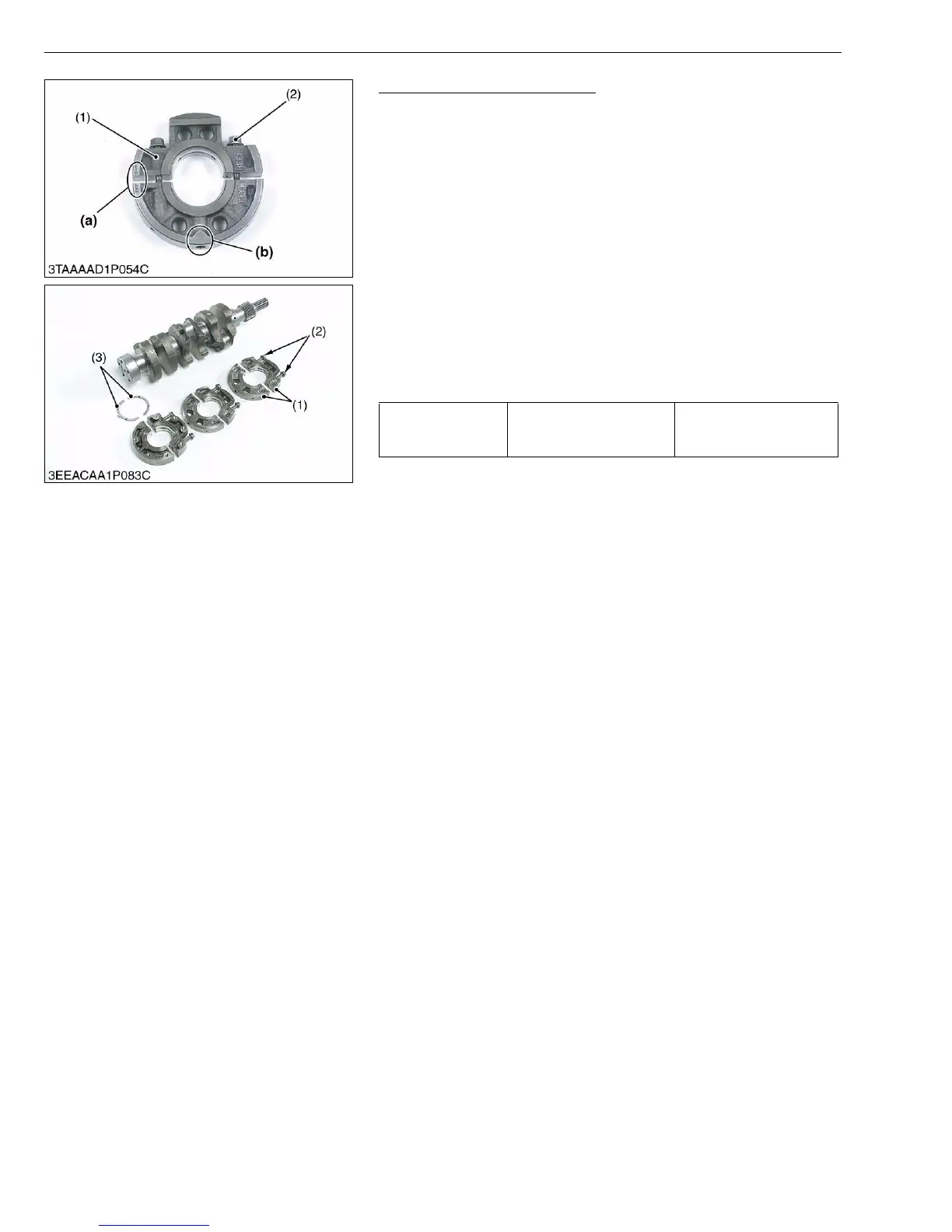 • Install the thrust bearing (3) with its oil groove facing outward.