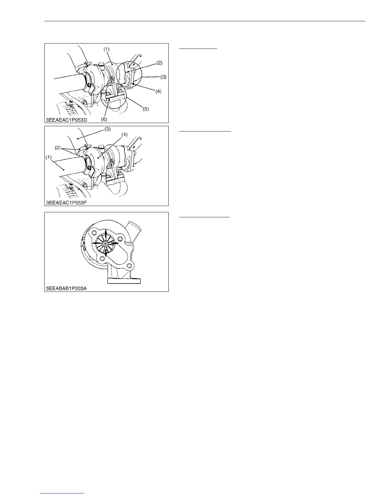 1. Check the exhaust port (3) and inlet port (5) side of turbine