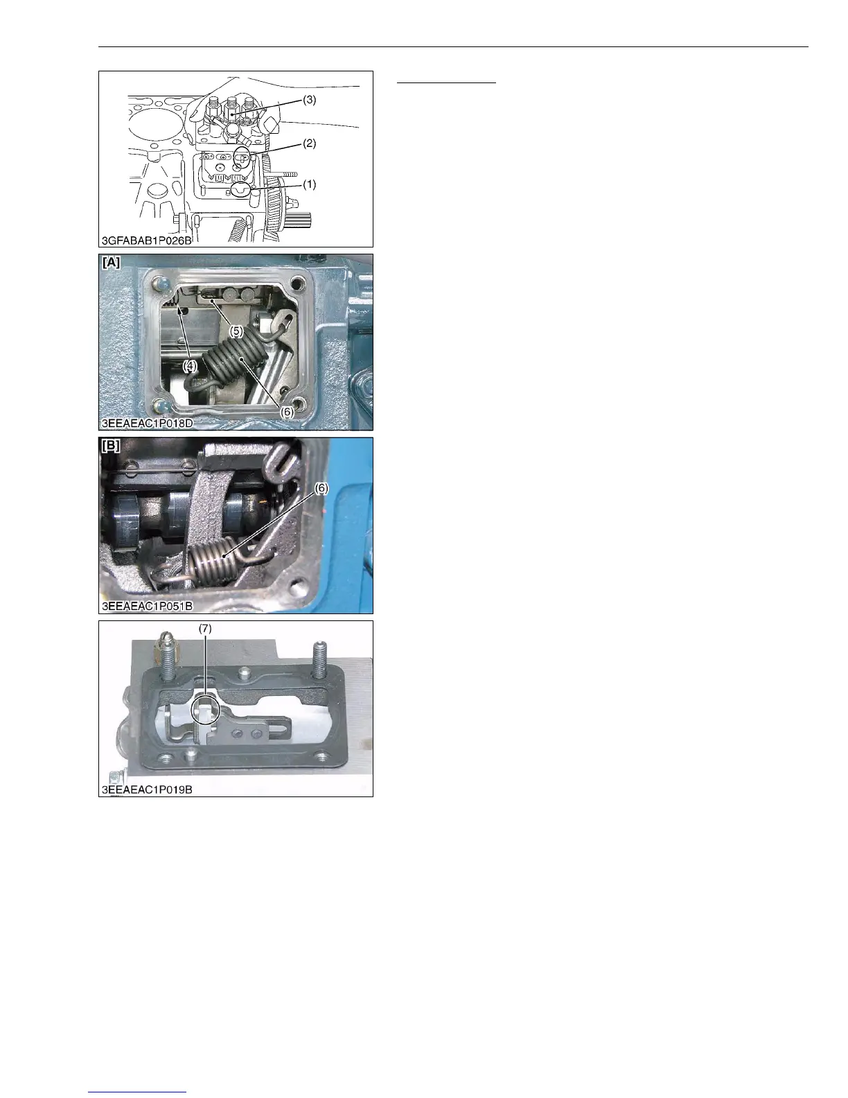 1. Disconnect the start spring (4) on the thrust lever side (5).