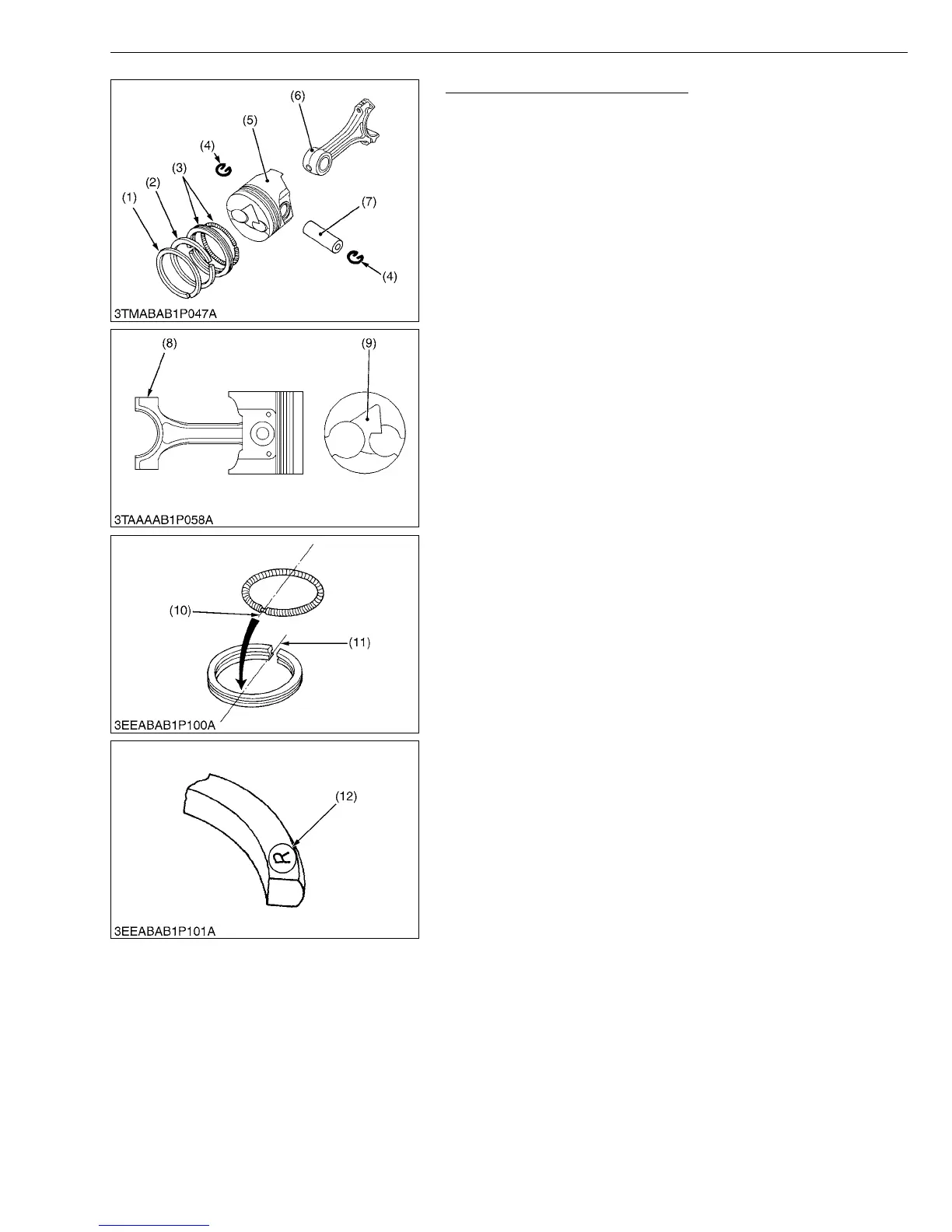 manufacturer’s mark (12) near the gap faces the top of the piston.