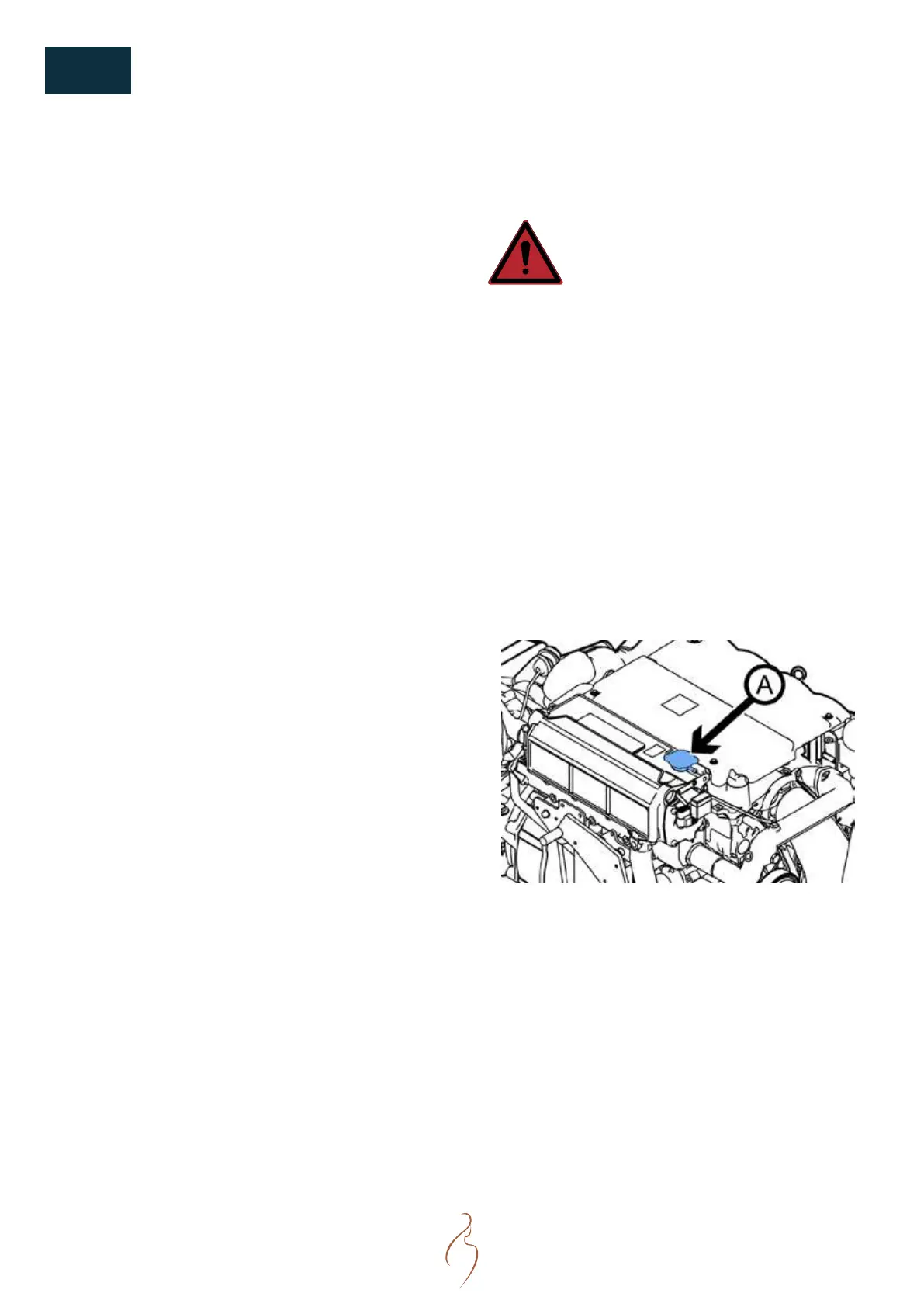 Never open the coolant lling cap or any plug of the