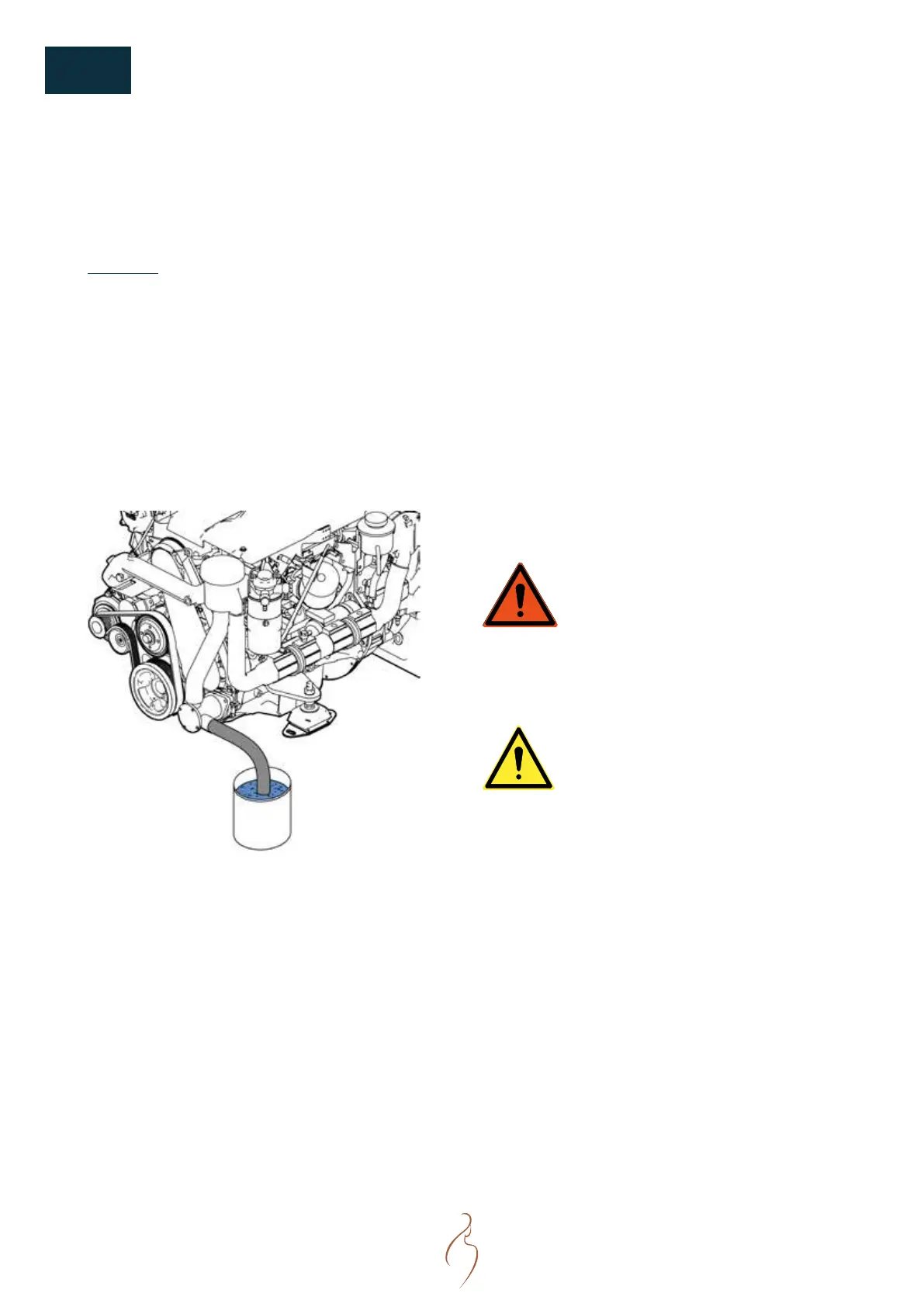 7. Drain the coolant mix and rell the raw water circuit