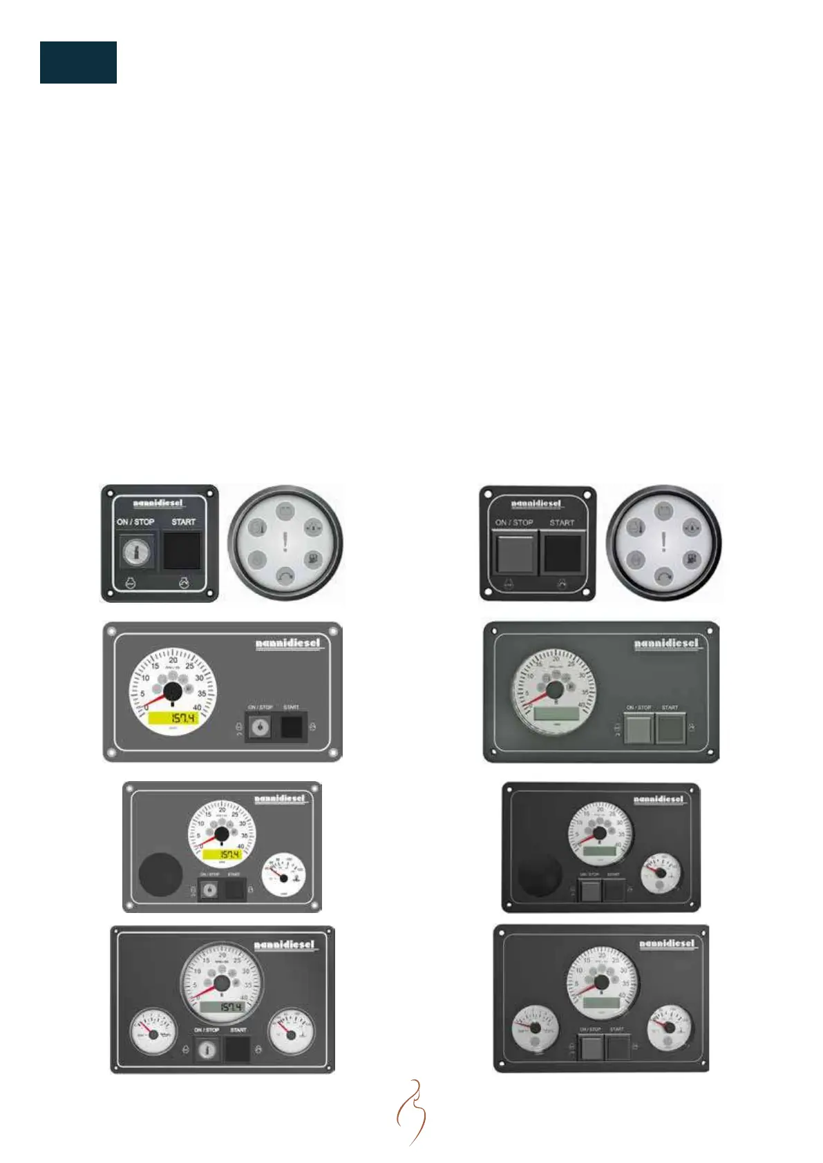 the current Nanni instruments panels range, followed by a table showing engines and relevant(s) instruments panel.