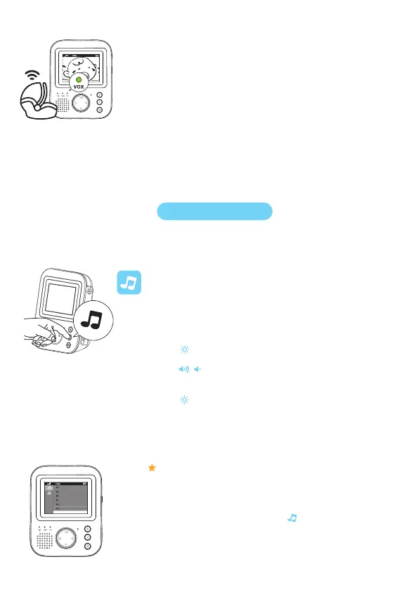 1. Press the lullaby button on the parent unit to open the menu for lullabies.