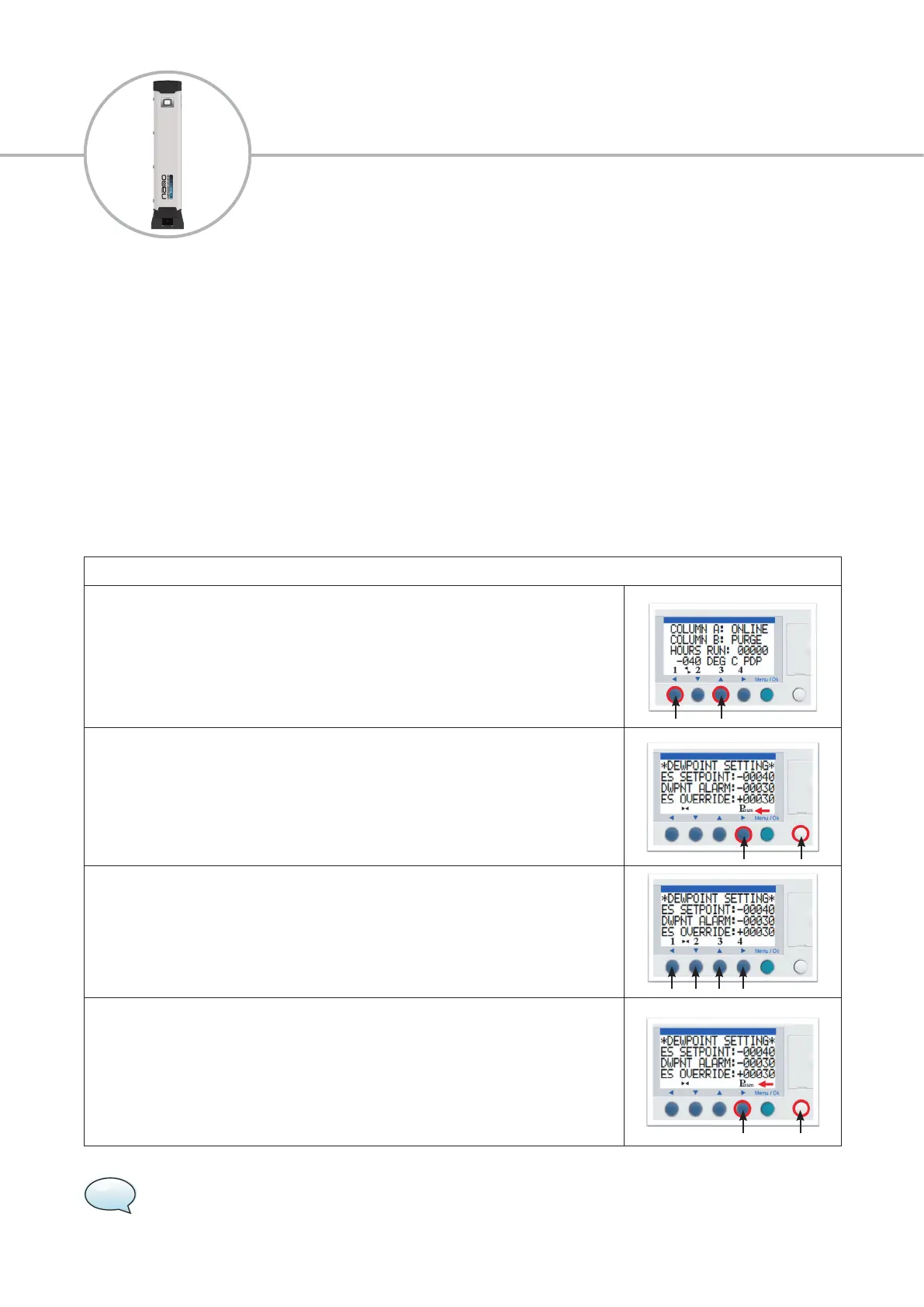 Using the buttons, adjust the ‘ES SETPOINT’ or ‘DWPNT ALARM’