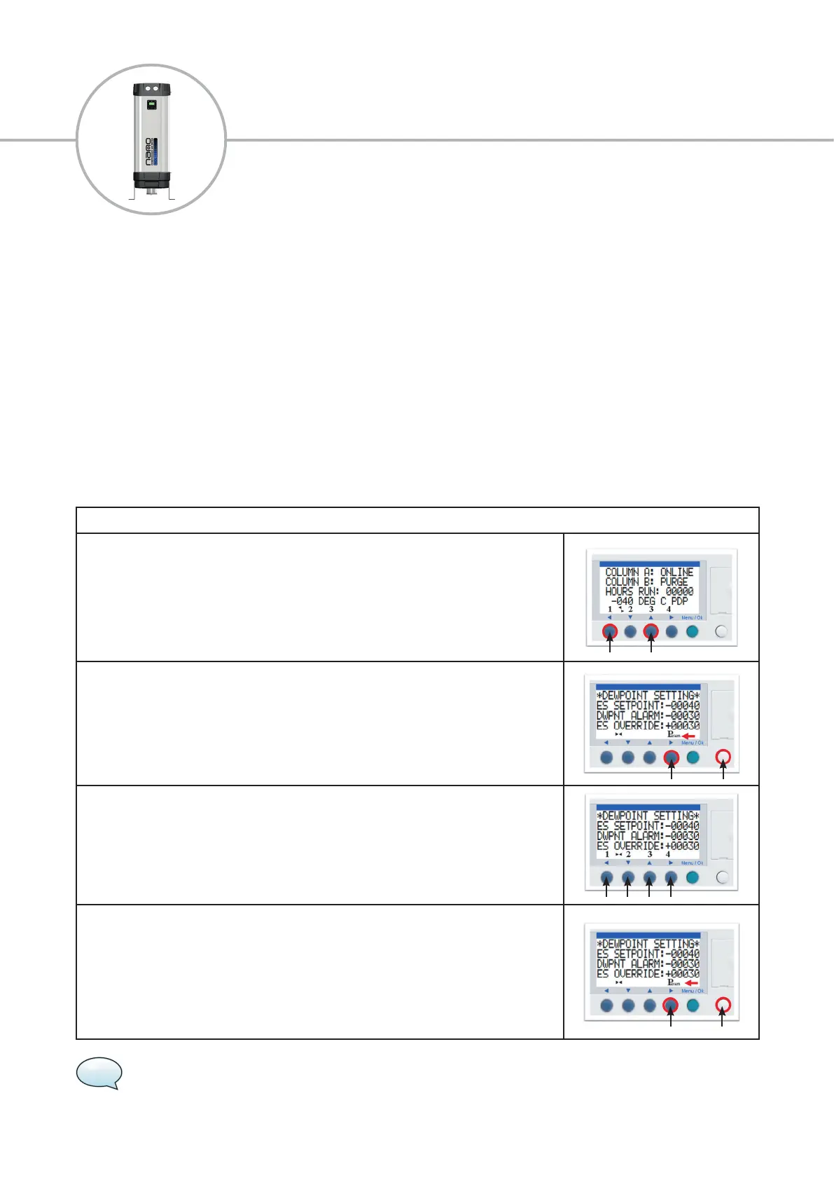 The pressure dew-point is displayed on the display of the control panel. When the dew-point displayed is equal to or better than -40°C
