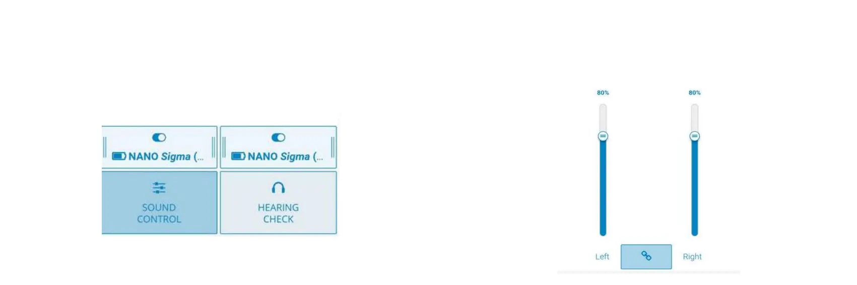 “chain” icon to link or unlink L and R devices.