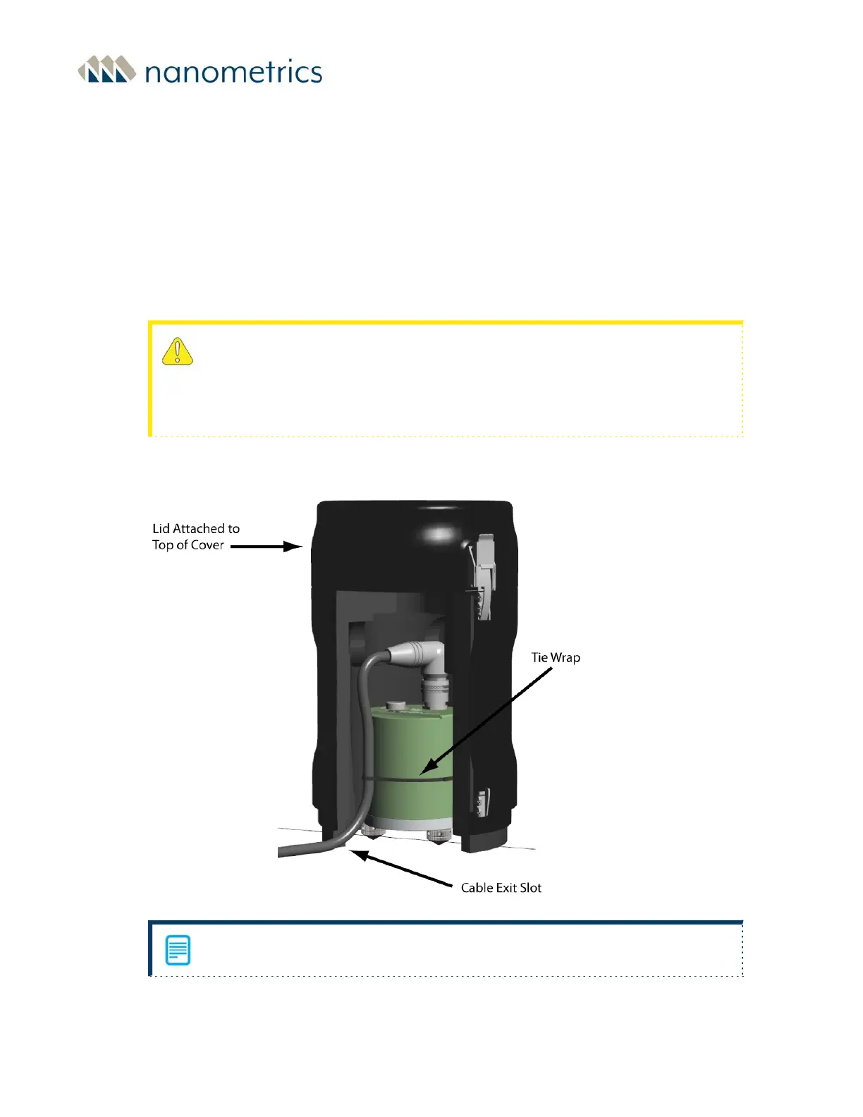 2. Secure the cable to the side of the seismometer with a tie wrap (see Figure 3-4 below).