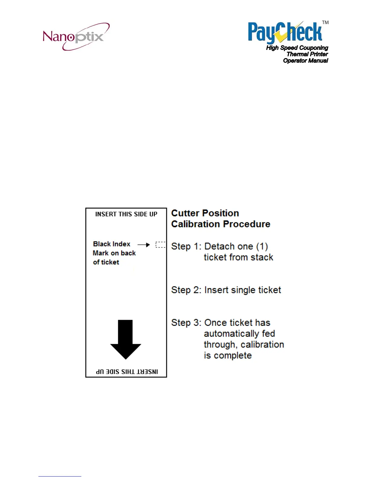 calibrated. This will be obvious by the printer either cutting the tickets in the wrong location or the