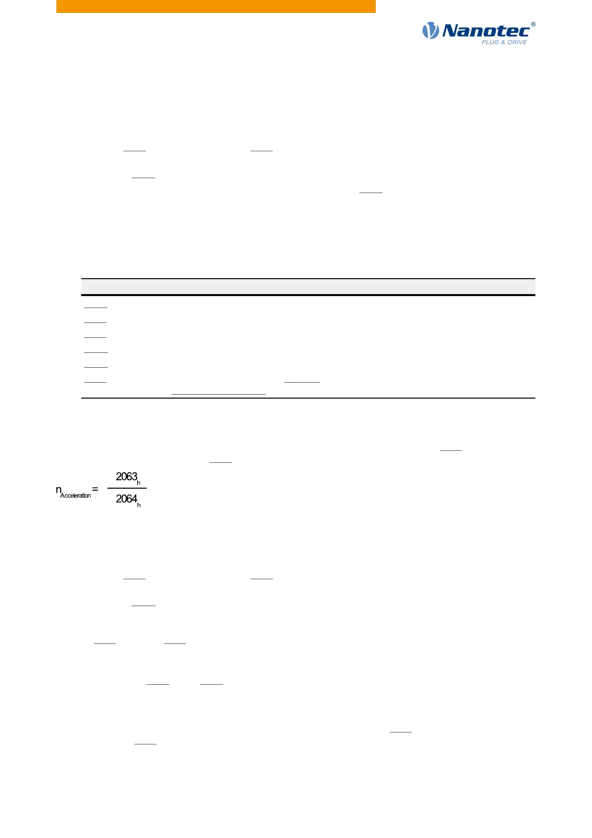 The factor n for the acceleration is calculated from the scaling factor for the numerator (2063