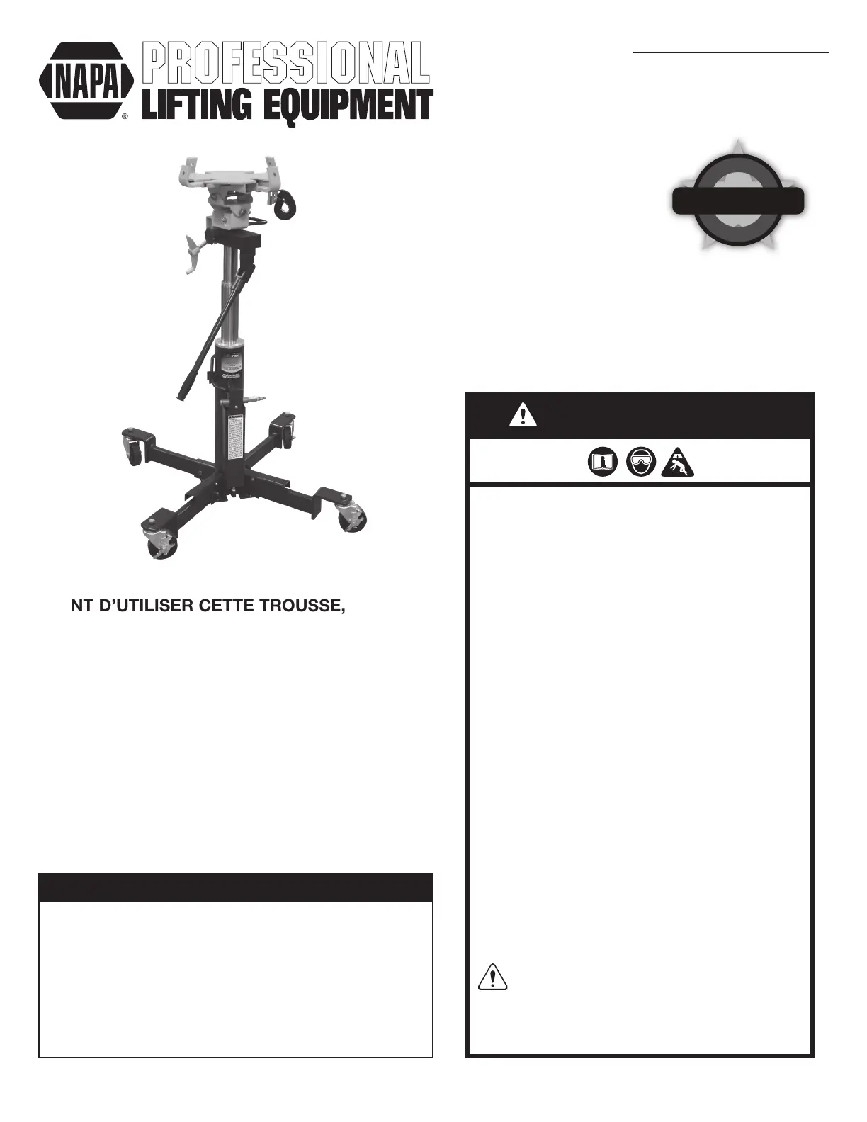 approuvé ou fourni par NAPA. • N’utilisez pas (ou ne modiez