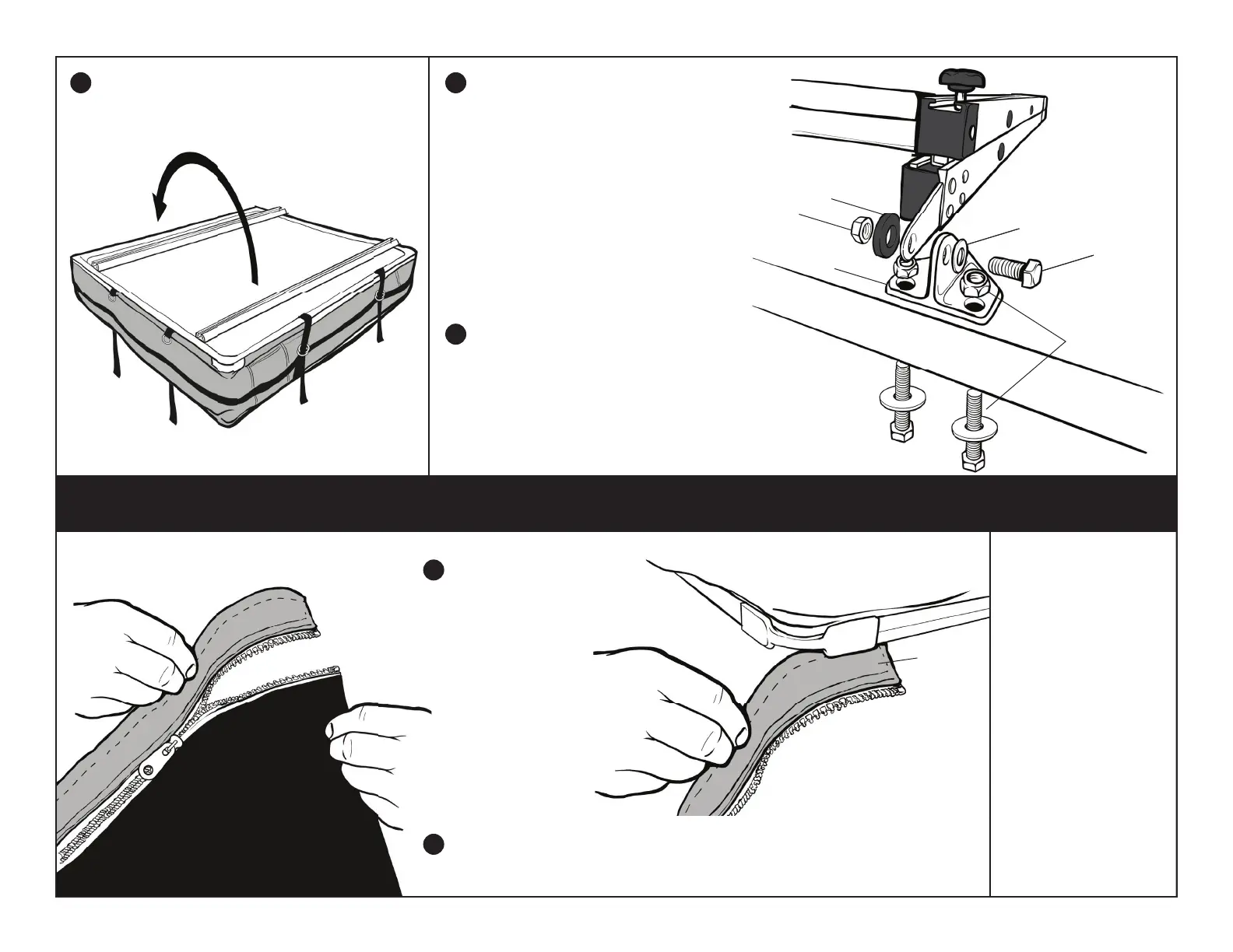 fabric gets caught along the way. Fasten the long loop straps on either side of the ladder.