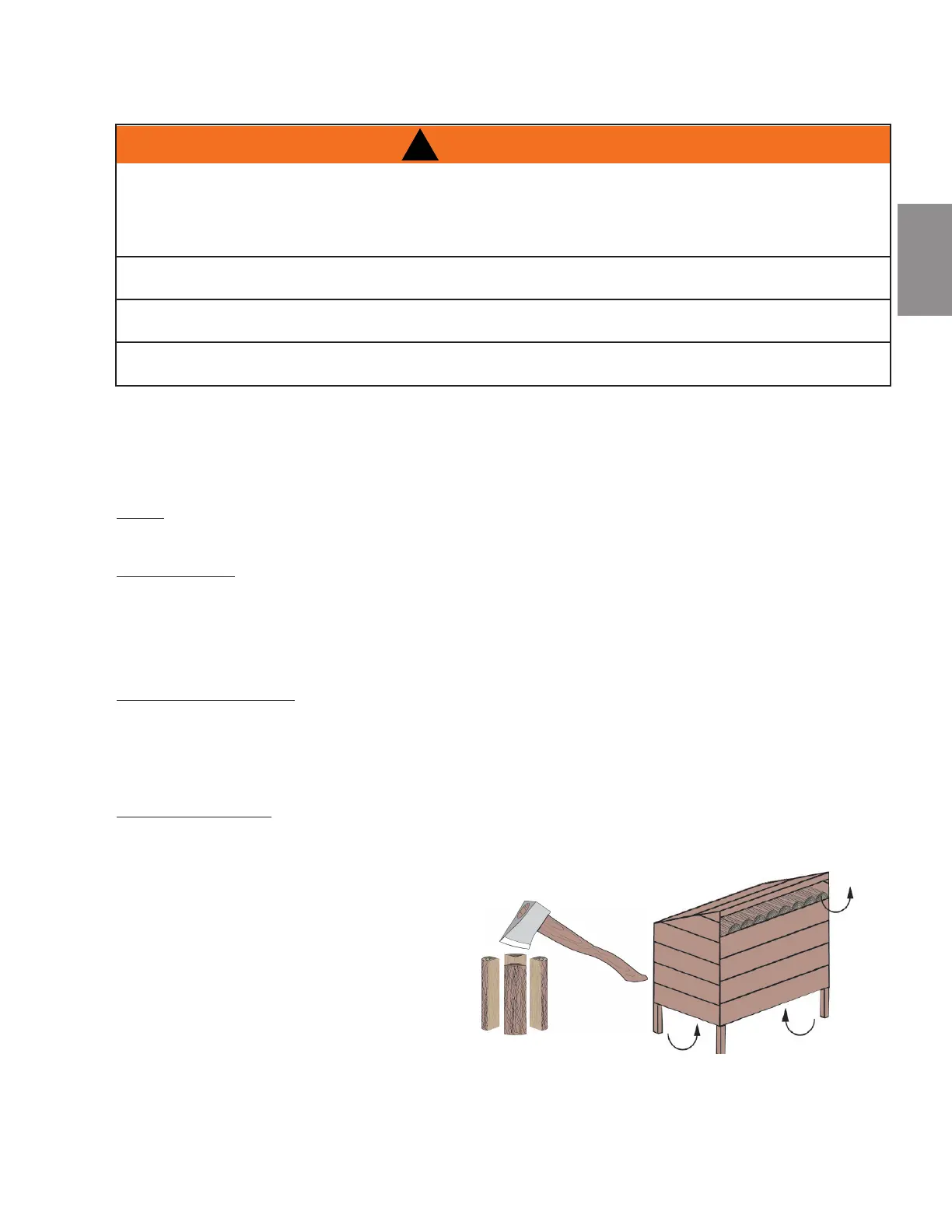 Bois de chauffage doit être divisé et empilés de façon à permettre la circulation de l’air