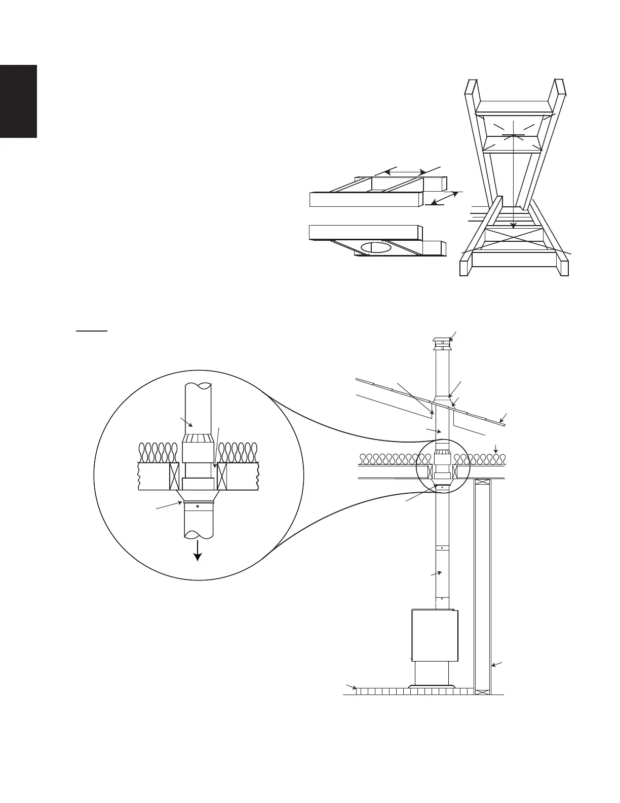 NOTE: The chimney must be supported at the ceiling or roof so that it’s