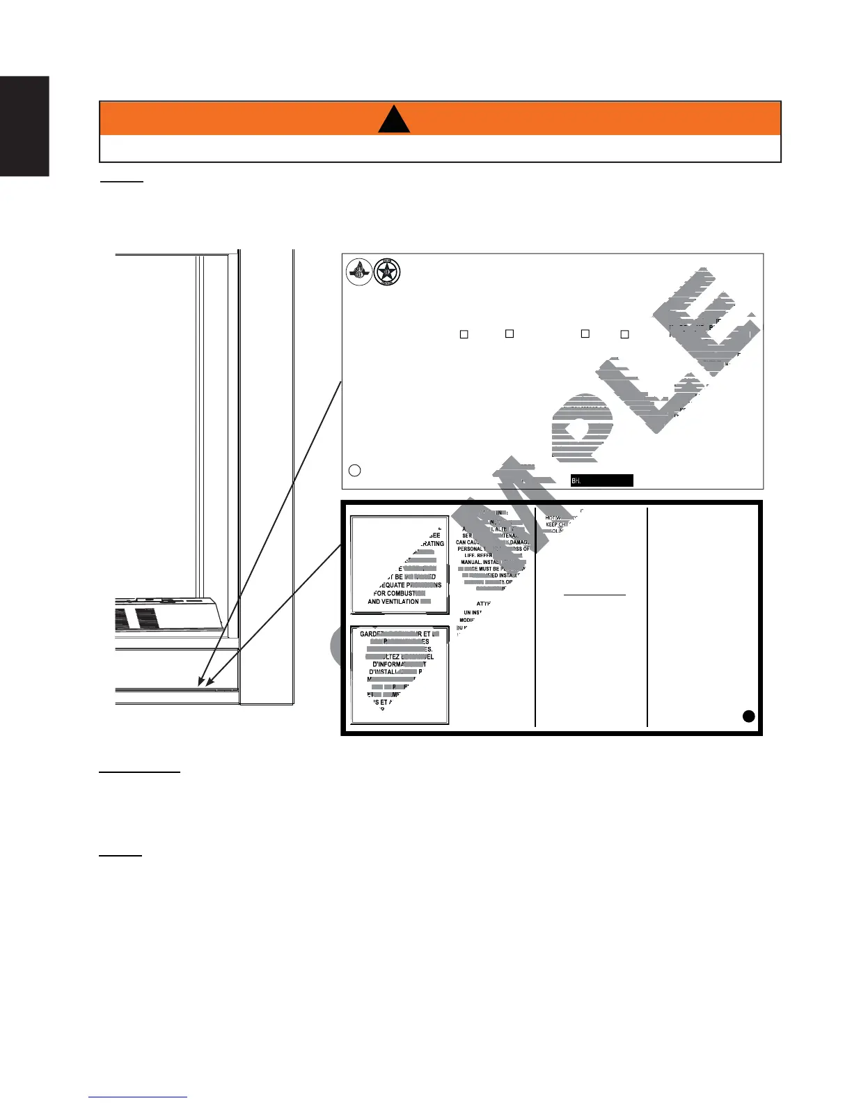 MESURES DE SÉCURITÉ CONTRE L’INCENDIE POUR LES INSTALLATIONS DANS LES MAISONS MANUFACTURÉS, LES SITES ET LES COMMUNAUTÉS, ANSI/NFPA 501A. THIS APPLIANCE MUST BE INSTALLED IN