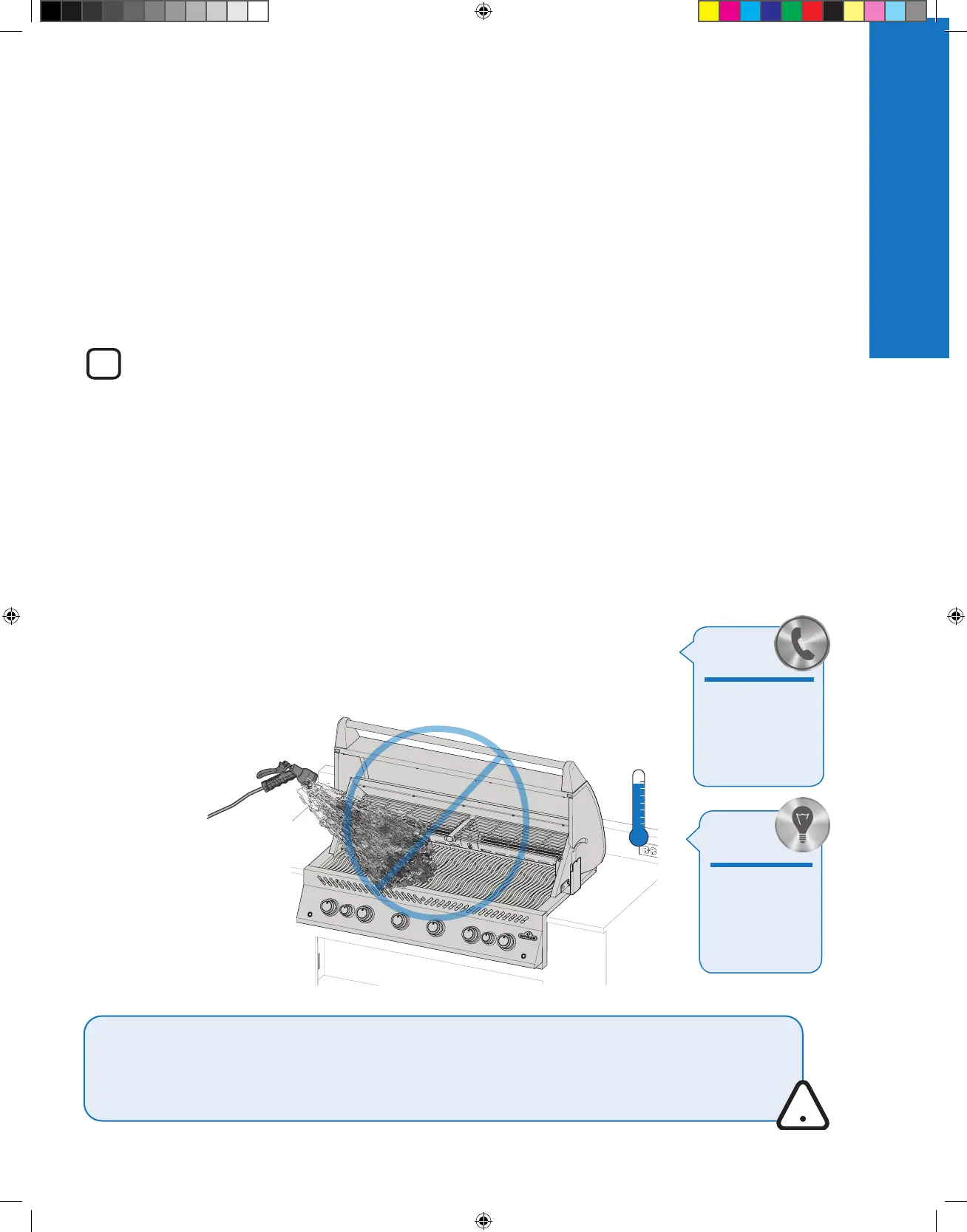 2. Do not allow cold water (rain, sprinkler, hose etc.) to come in contact with hot ceramic burners. An immediate change in