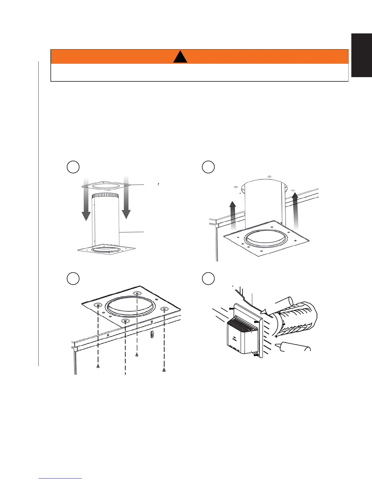 4. Insert the vent pipes through the fi restop maintaining the required clearance to combustibles. Holding