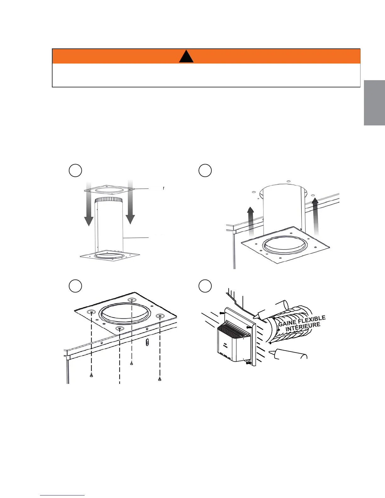 4. Insérez les deux évents dans l’espaceur coupe-feu, en respectant les dégagements aux combustibles