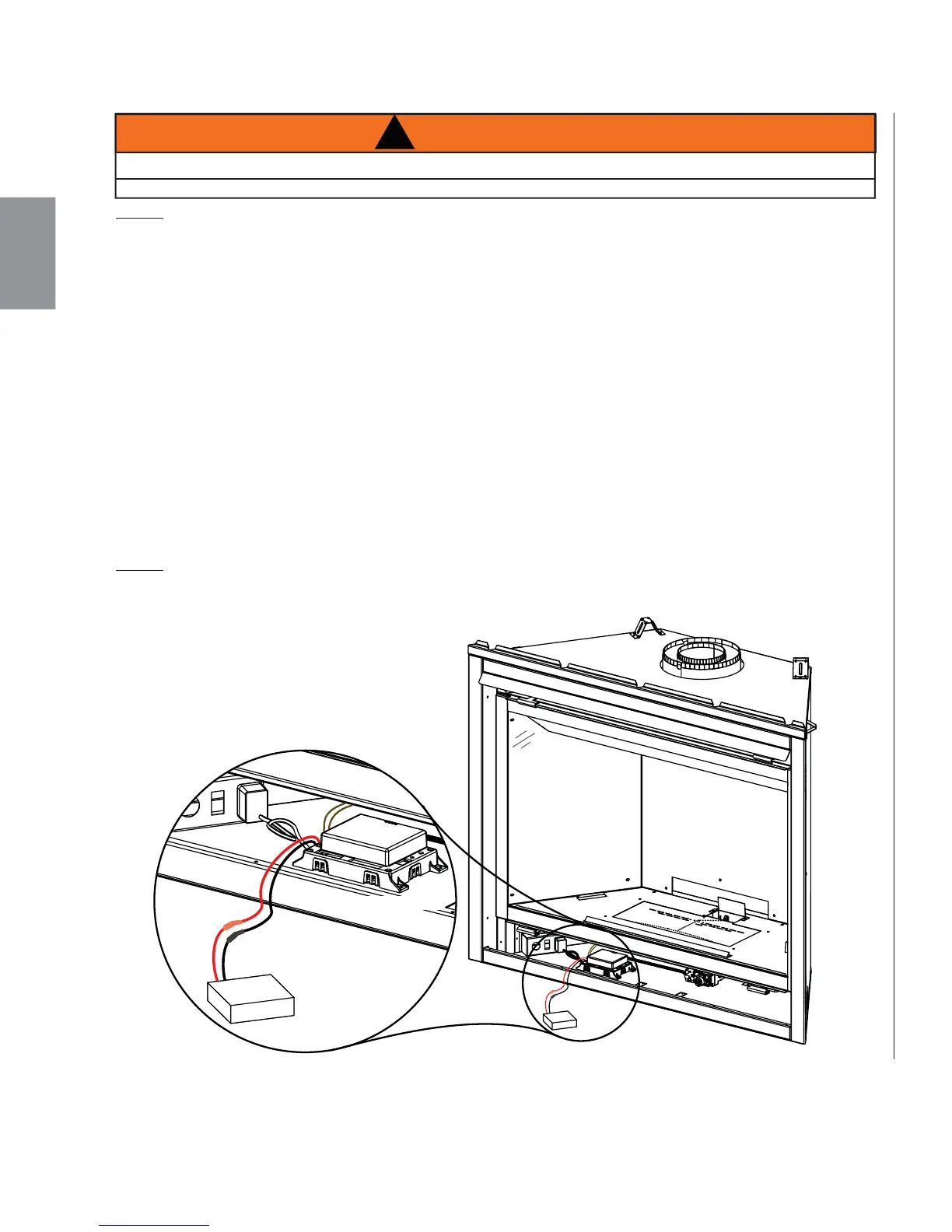 F. Placer le sauvegarde de pile soit sur l’âtre du foyer dans le compartment de contrôles, assurez-