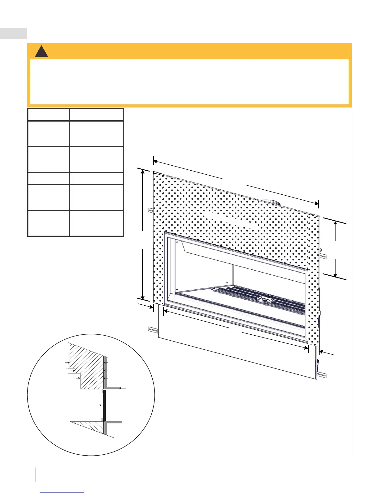 • Les matériaux de finition incombustibles ne doivent pas dépasser de plus 4” (102mm) la façade de la porte