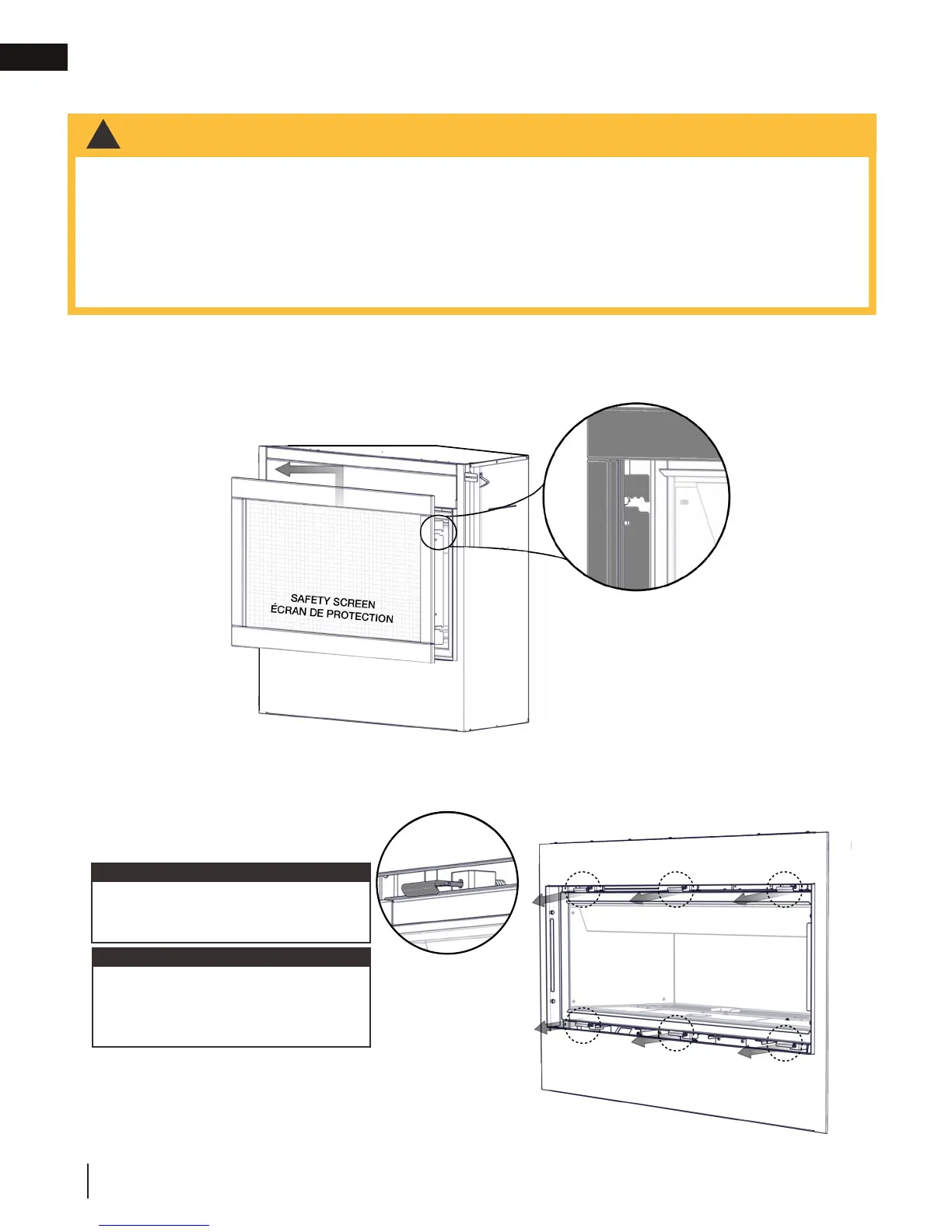 Leave a hand on the glass door during entire door removal. The glass door is secured to the firebox with four