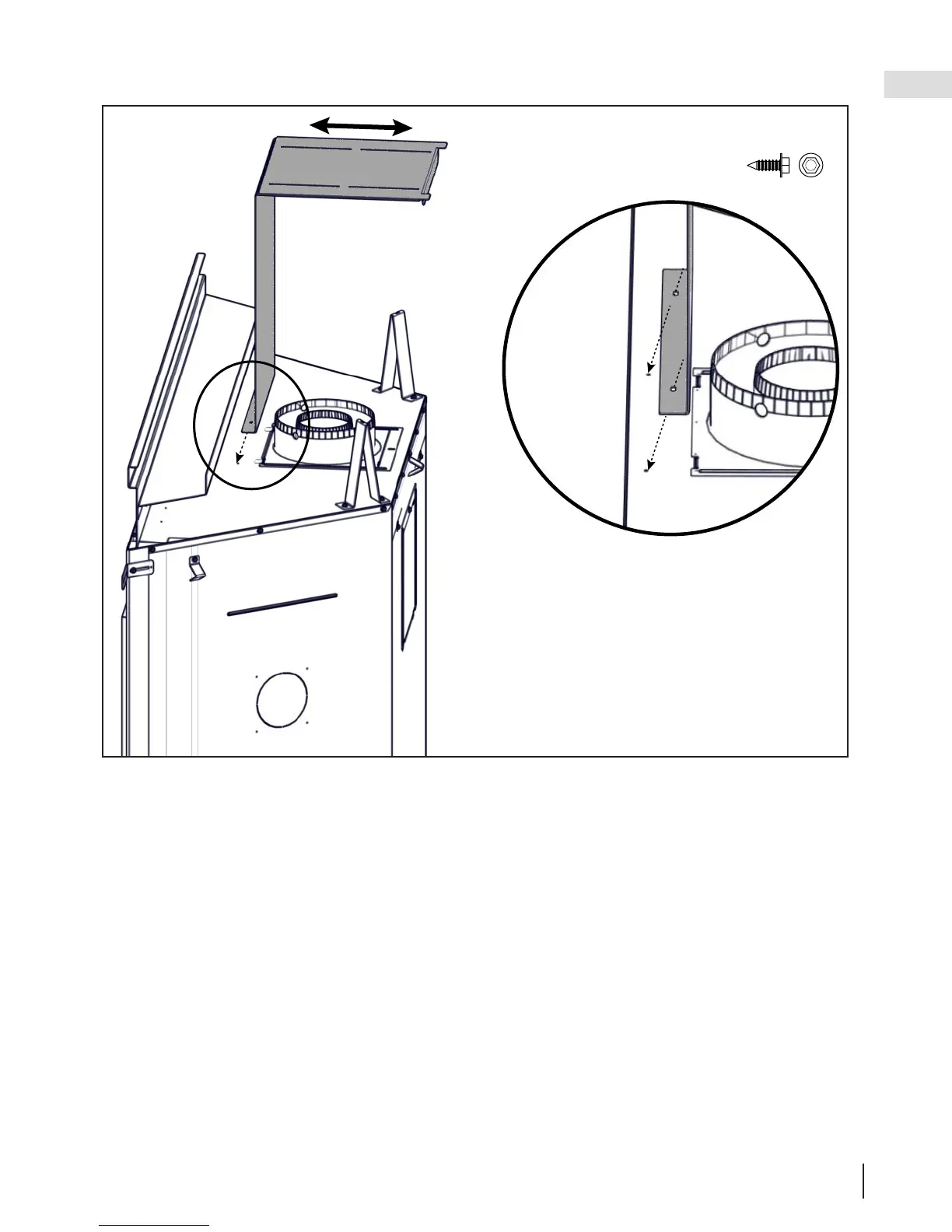 B. Installez le pare vent en le fixant en haut de l’appareil à l’aide de 2 vis (fournies).