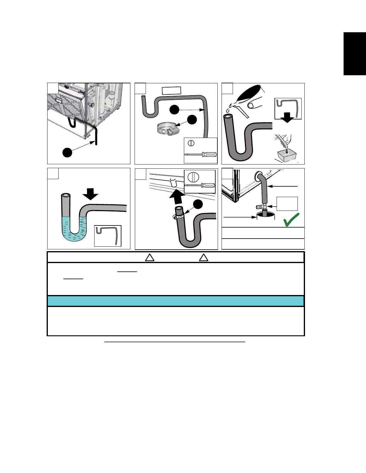 DO NOT SUBMERGE THE DRAIN HOSE TERMINATION UNDER WATER BECAUSE