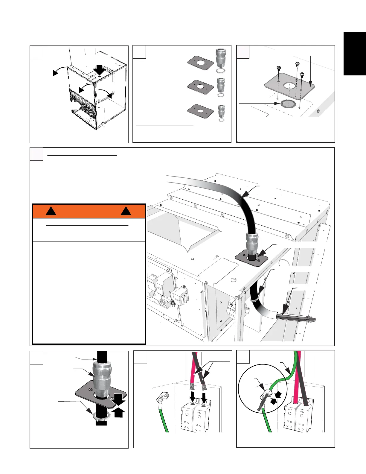 1. Attach the cable to a strain relief connector. The strain relief connector must be certified and approved for
