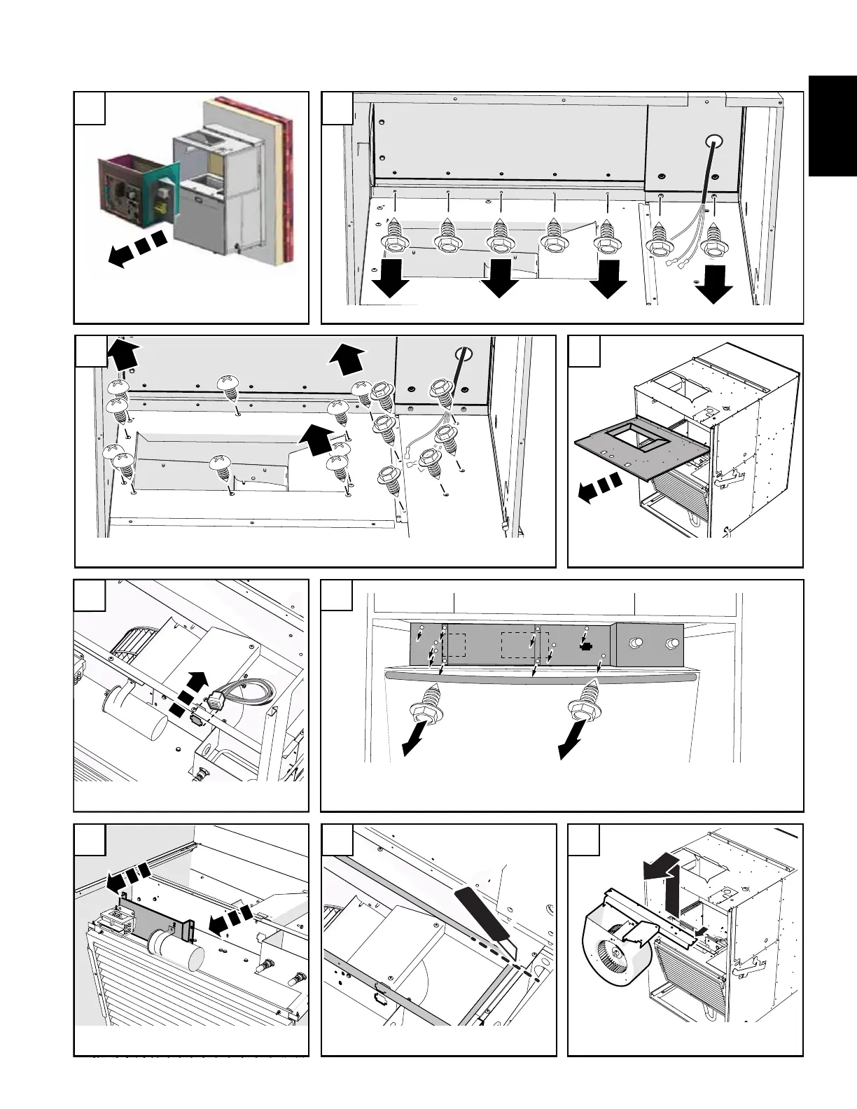 Remove 10 screws from the front blower plate and electrical plate