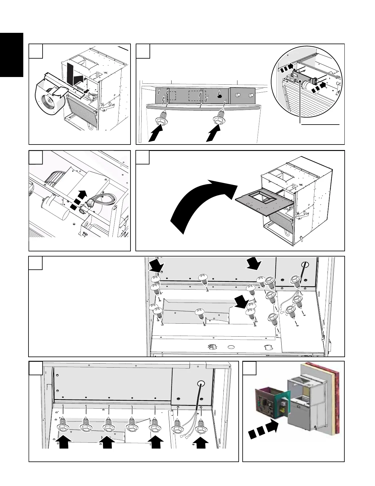 Install 10 screws to the front blower plate and