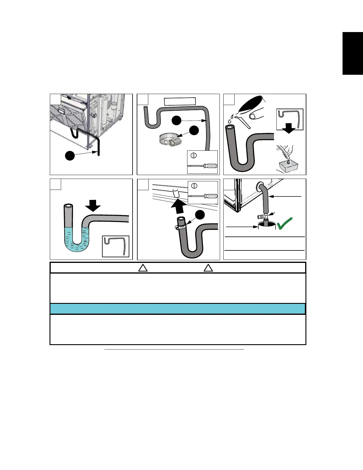N’IMMERGEZ PAS L’EXTRÉMITÉ DU TUYAU DE DRAINAGE, CAR CELA CRÉERA UN PIÈGE