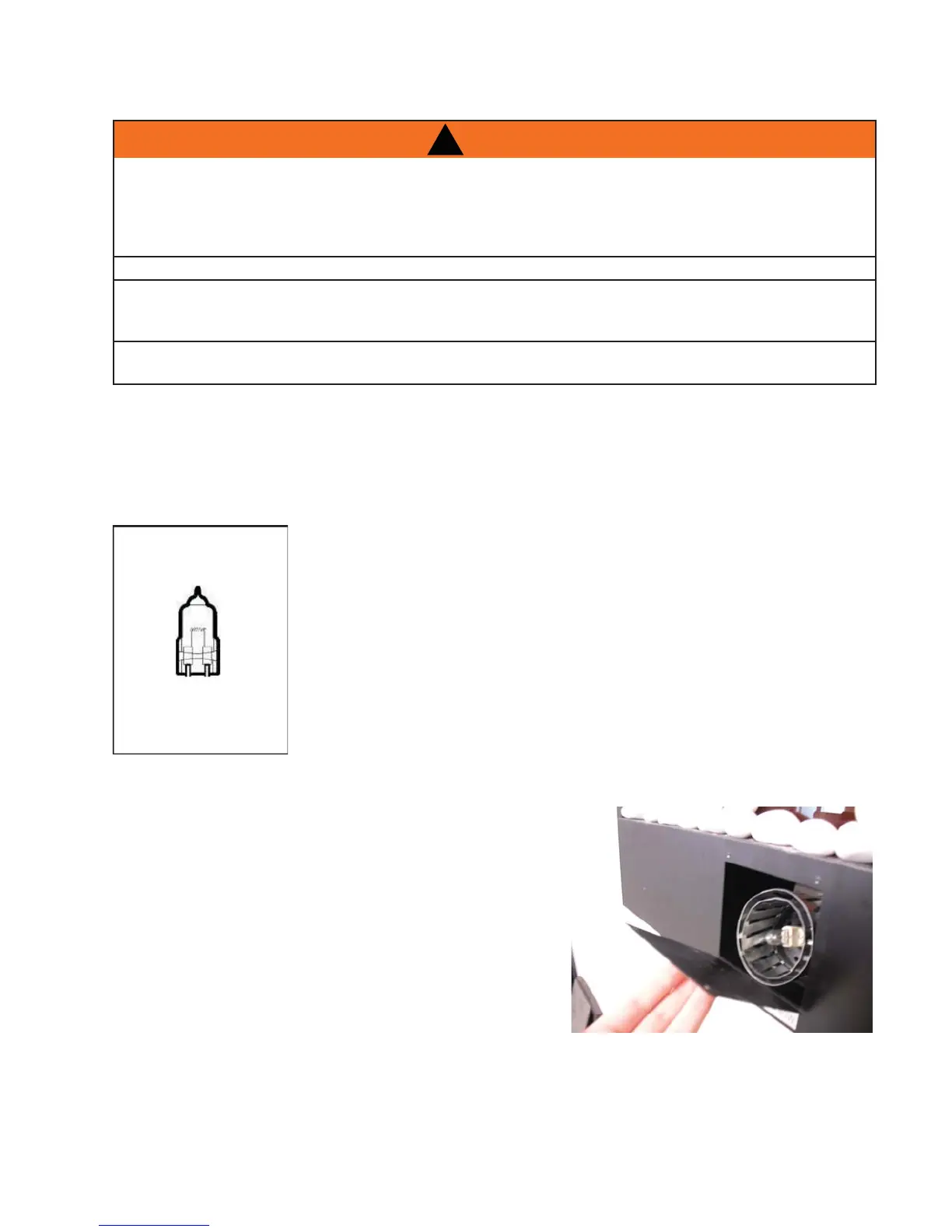 LAMPS WHEY THEY HEAT UP. USE GLOVES OR A CLEAN DRY CLOTH WHEN HANDLING LAMPS.