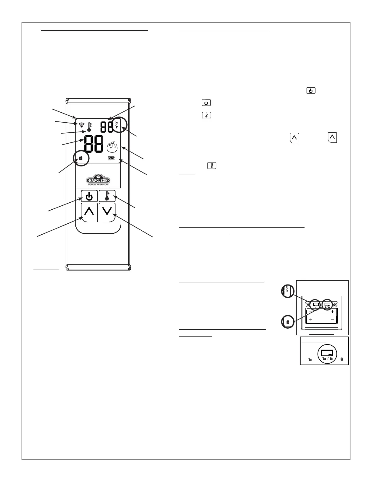 température désirée, la télécommande mettra en marche ou éteindra le foyer