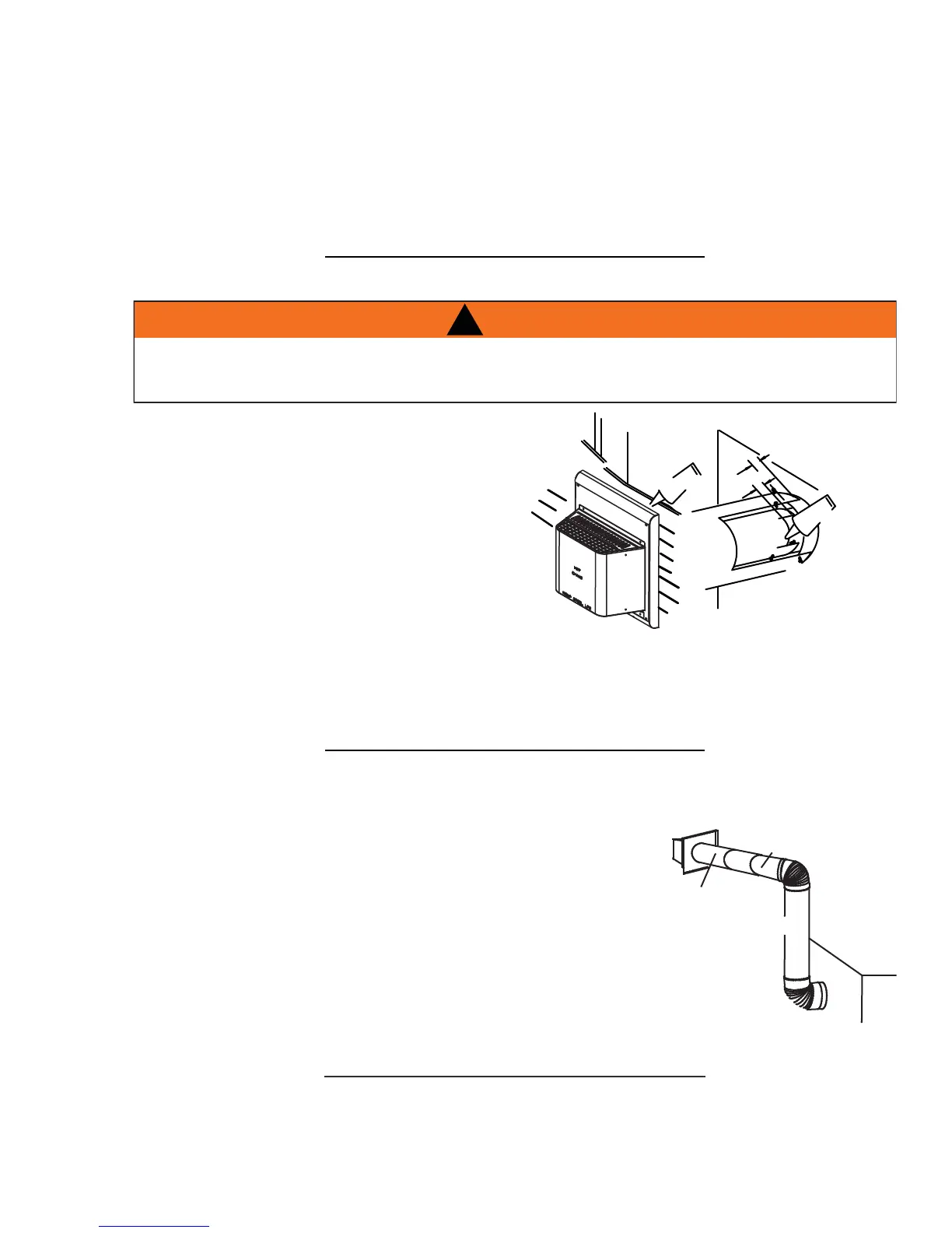 RISK OF FIRE, DO NOT ALLOW LOOSE MATERIALS OR INSULATION TO TOUCH THE VENT PIPE.