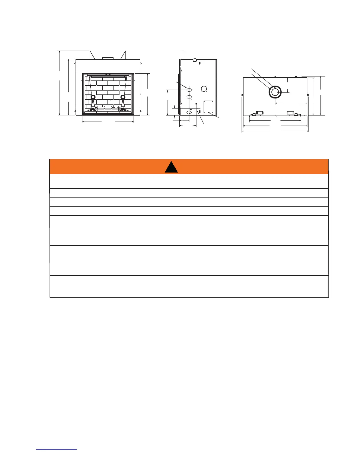OBJECTS PLACED IN FRONT OF THE APPLIANCE MUST BE KEPT A MINIMUM OF 48” FROM THE