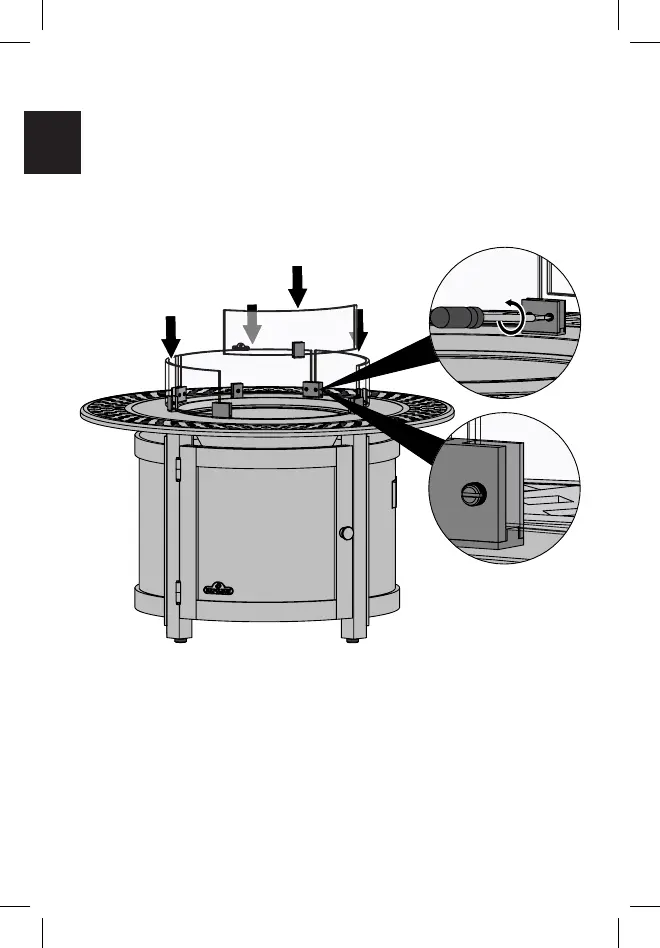 Schrauben in den Eckwinkeln und schieben Sie die Glasstücke